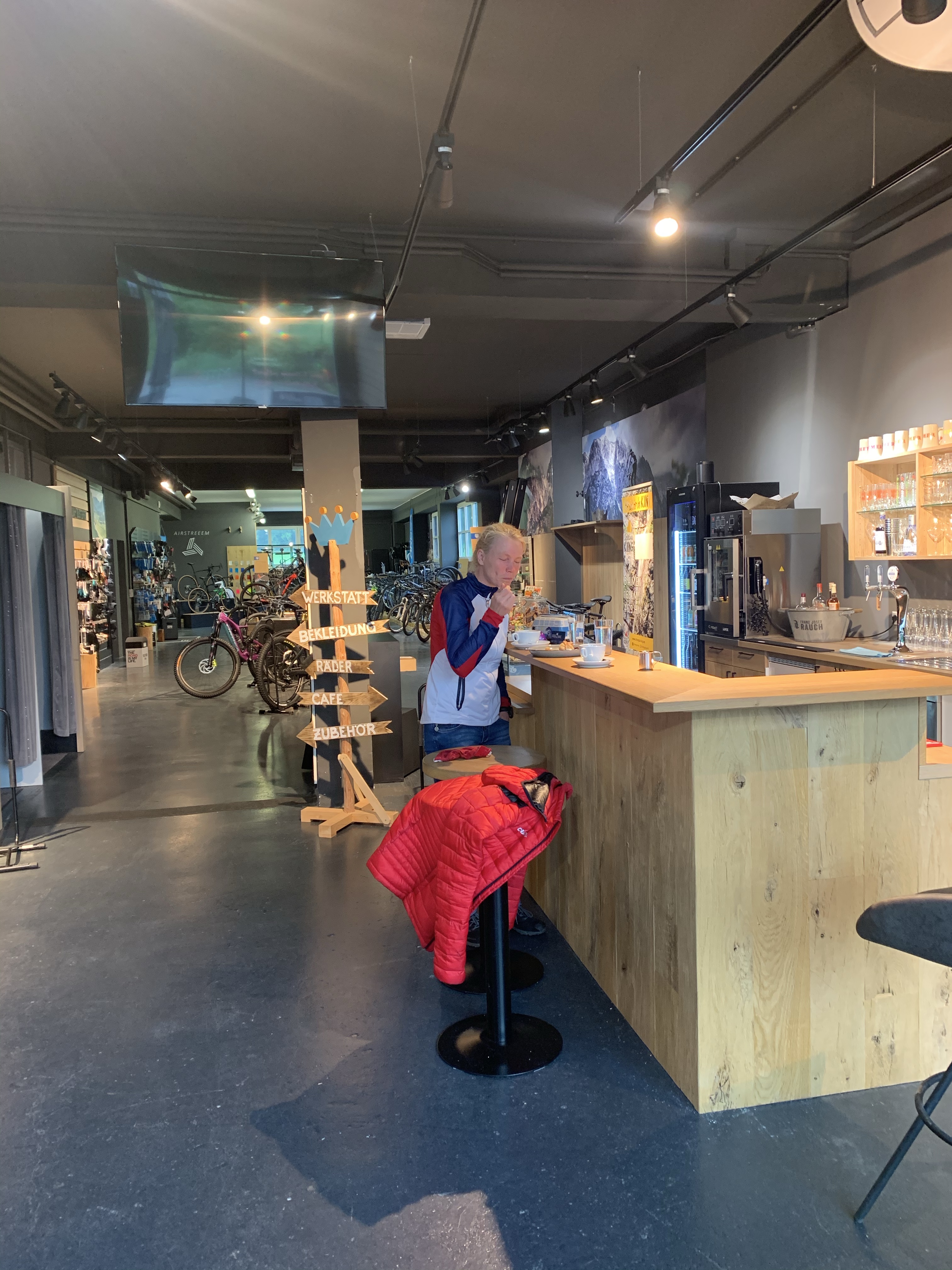 Nachdem wir die Idee „Bodensee“ ersetzt haben durch Slovenië, haben wir uns eine Route überlegt, die an Salzburg entlang führt und wir uns endlich nach 2 Jahren mal wieder mit – wie die Österreicher es zu sagen pflegen – Promberger Martin treffen können. Gesagt getan, am Sonntag haben wir schon mal Martin informiert, dass wir einen Top Radmechaniker brauchen 😀 Hilfsbereit hat der dann Sonntagabend alles in die Wege geleitet und wir konnten Montag bei Prinzbike vorbeischauen 💪🏻 Ein total schöner und interessanter Laden, Kombi aus Fahrradgeschäft und Café. Ob da unsere Dortmunder Edelhelfer noch einen Schritt wagen? Neben einem sehr leckeren Kaffee und selbstgebackenem Apfelstrudel, gab es eine kompetente Beratung von Mario. Und seine Mechaniker haben das Rad wieder geräuscharm gemacht 😀