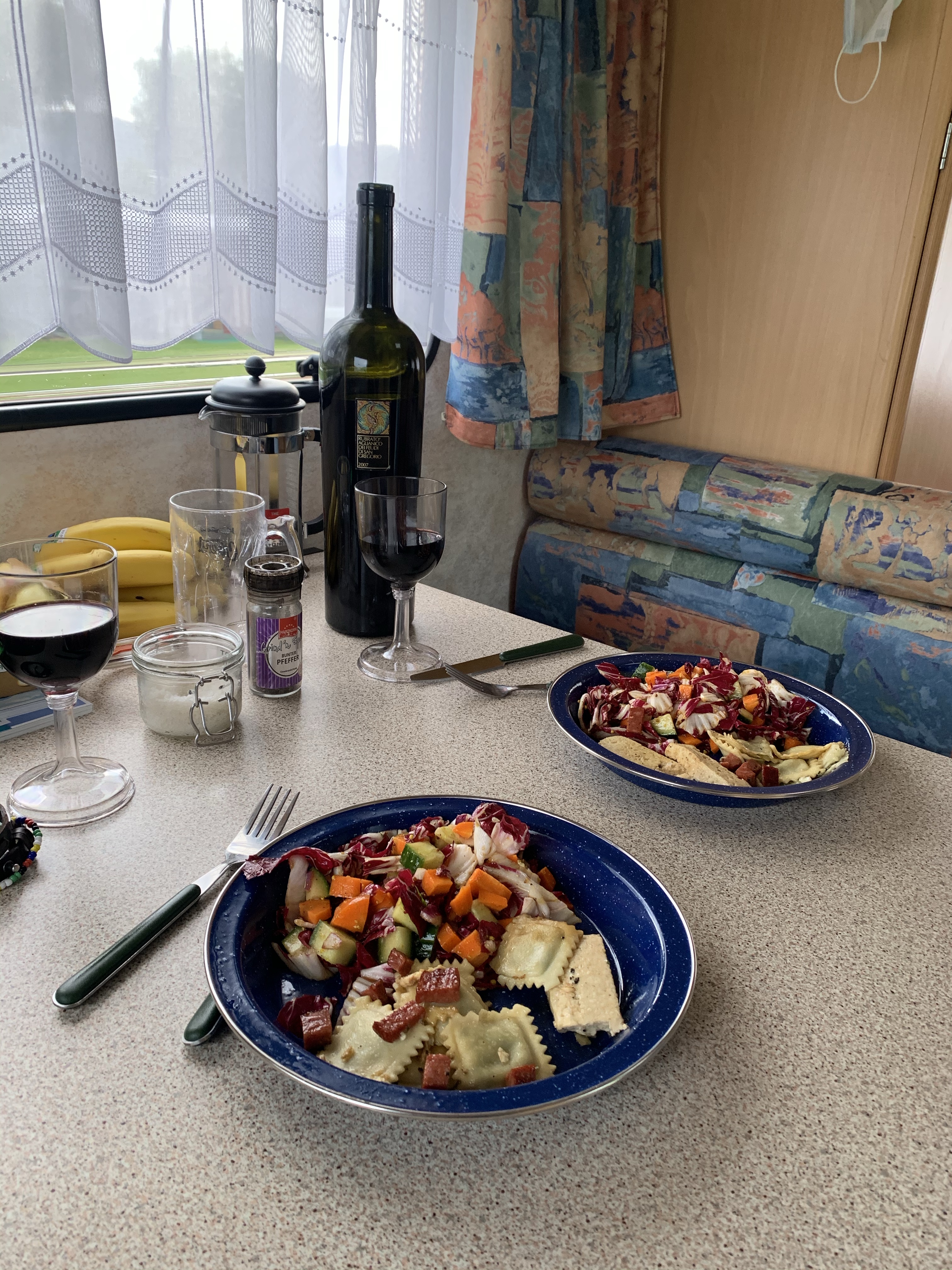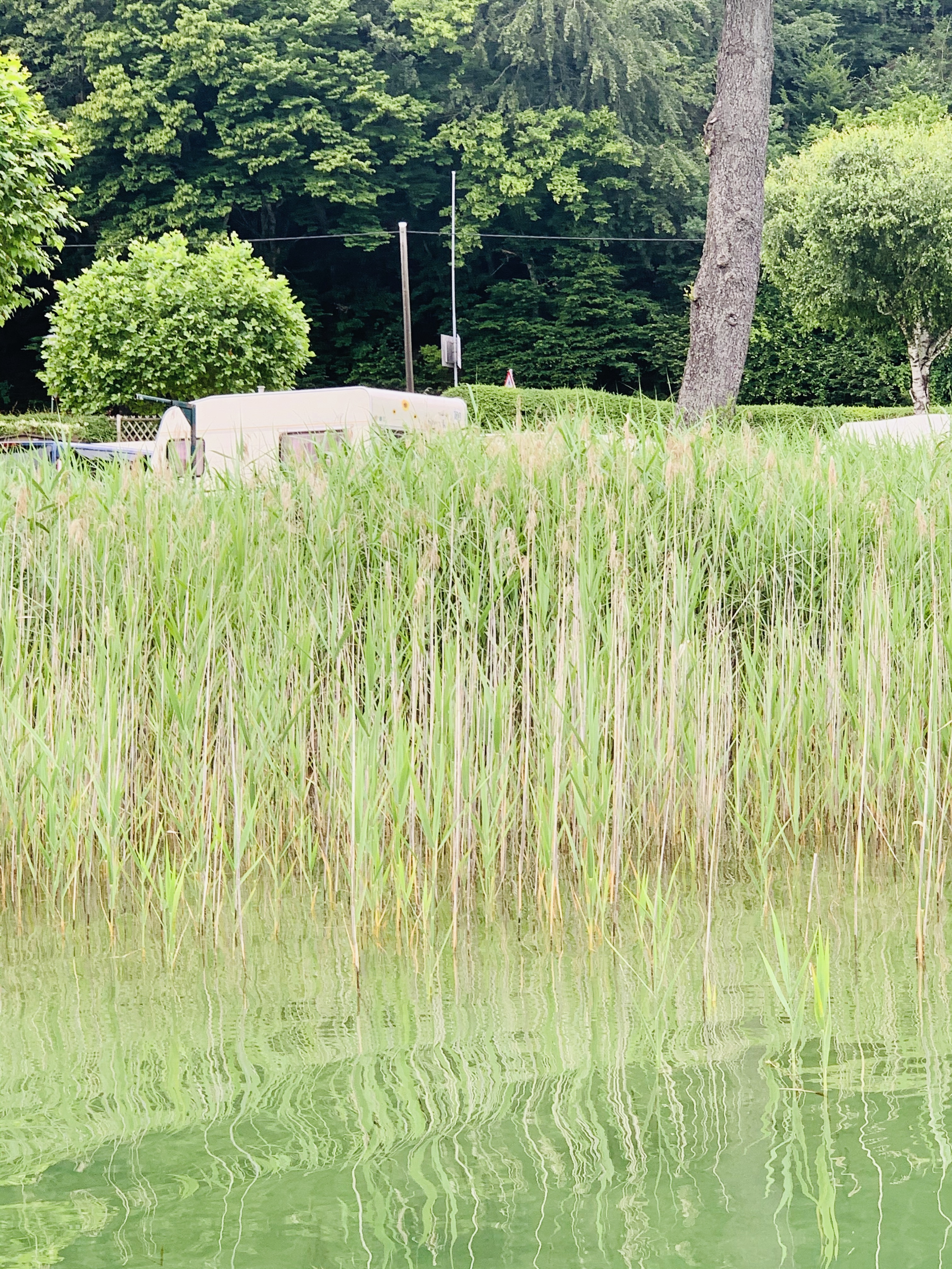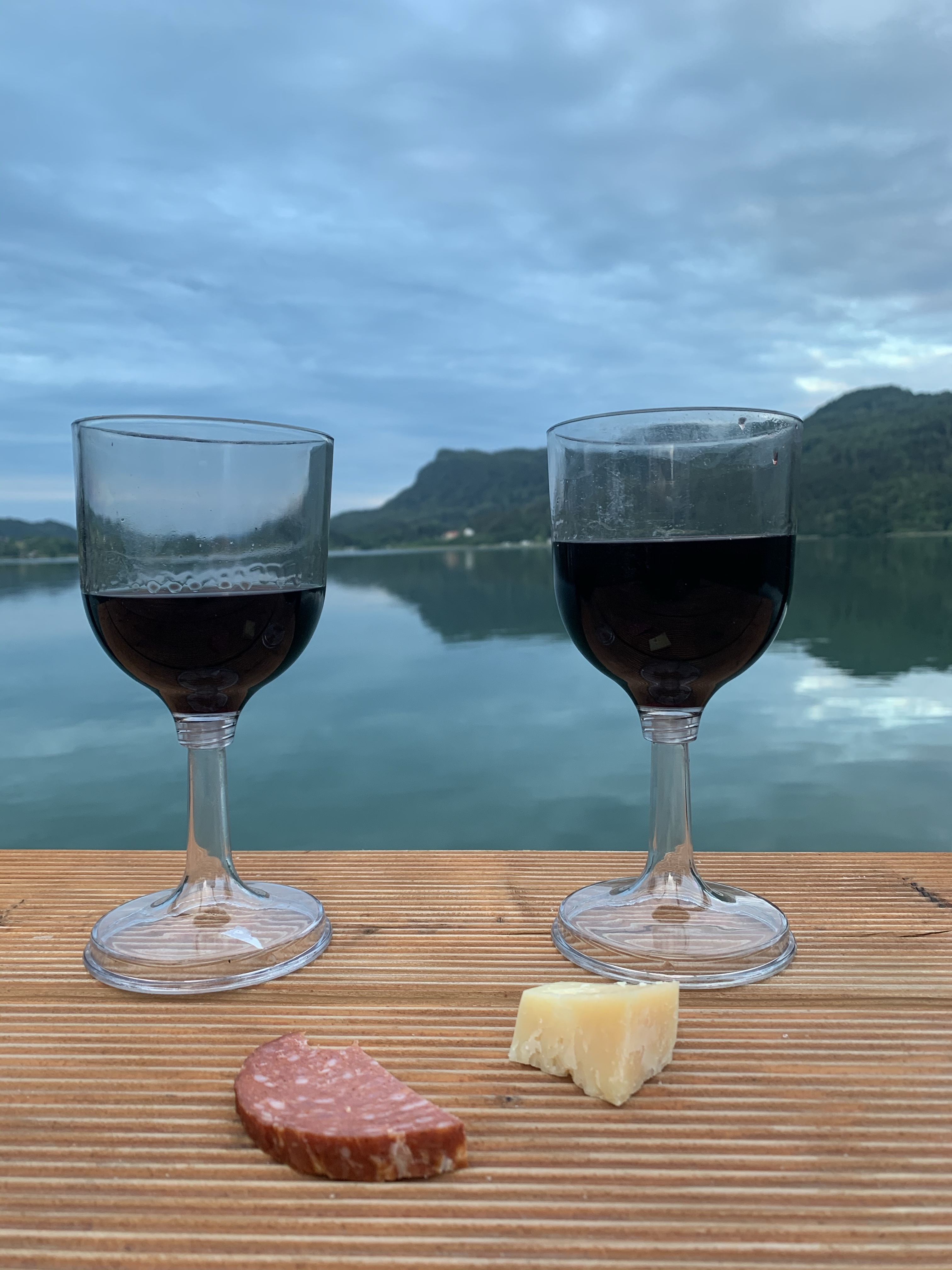 Eine entspannte Fahrt über die schön leere österreichische Autobahn führte uns nach Plescherken am Keutschacher See. Ein wunderbares Fleckchen Erde. Bei Ankunft haben wir sofort gespürt: hier herrscht Entspannung pur! Die Sonne schien, der Campingplatzpatron war sehr freundlich und hat uns geholfen, die Gerda auf den besten Platz zu rangieren, alles easy 😀 Als wir noch – ein wenig unerfahren wie wir sind – herum hampelten, kam schon ein „hilfsbereiter“ Dauercamper angerannt. Wir wussten natürlich nicht, dass das der Blockwart war. Statt tatkräftig anzupacken, wies er uns nur daraufhin, dass Gerda nicht konform mit den anderen in Reih und Glied stand. Da haben wir ihm ein charmantes Lächeln gegönnt und weiter herum gehampelt 😇 Nach knapp 2 Minuten kam der Patron, entschuldigte sich ein paar mal und gemeinsam haben wir die Gerda schön ordentlich eingereiht 😂