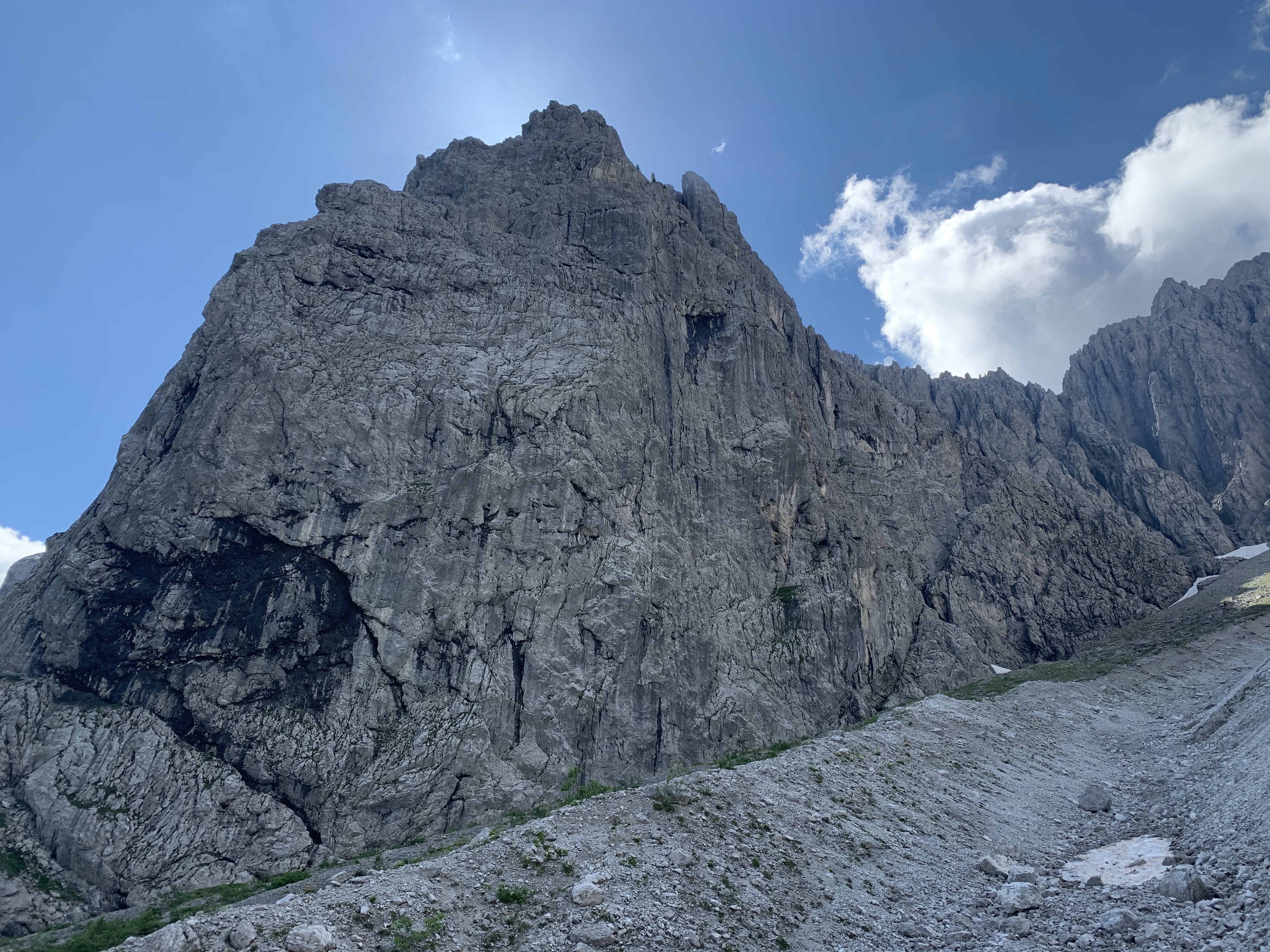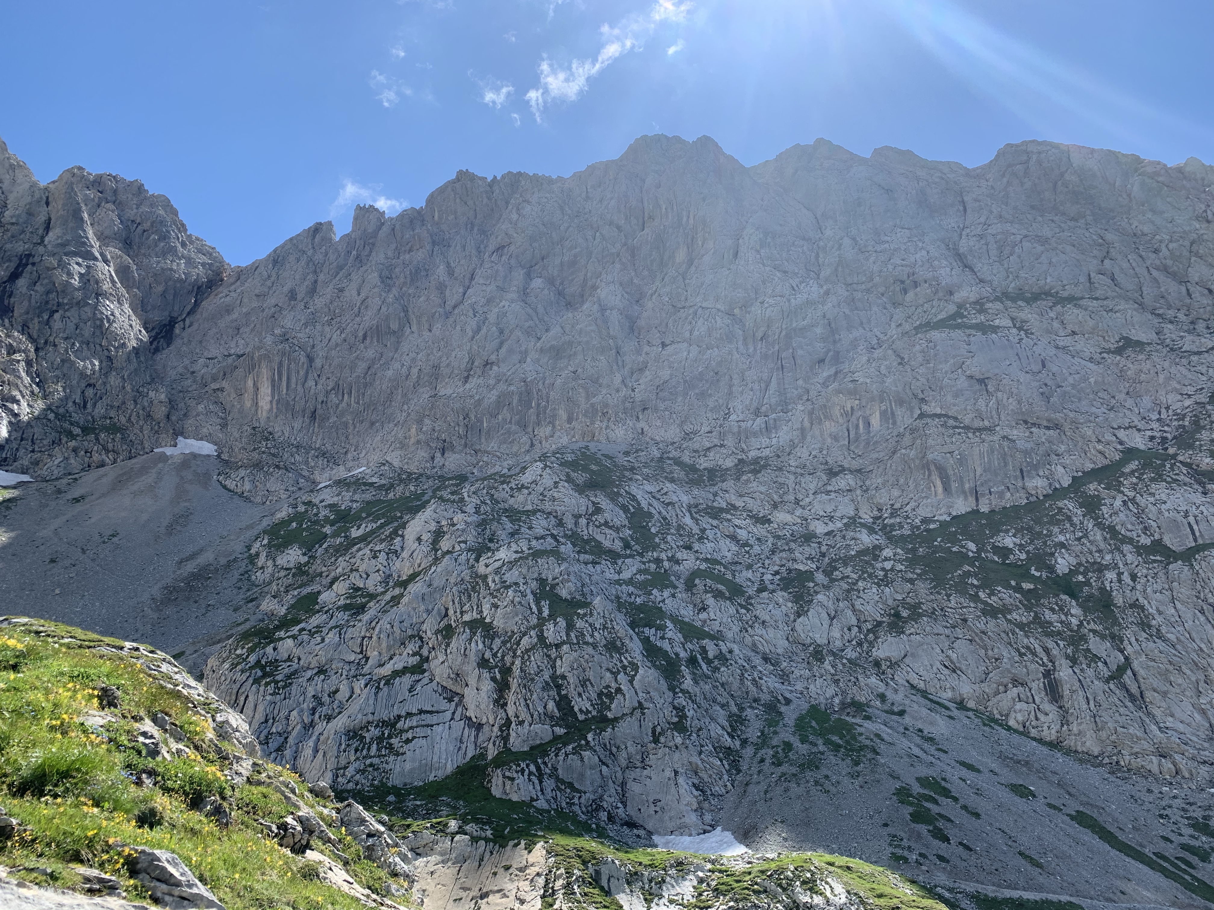Sehr beeindruckend. Auf dem Gipfel unsere Stullen gegessen und dann wieder runter. Der Abstieg war am Anfang etwas schwerer als gedacht, und nach einige Kletterpassagen und einem Schneefeld kamen wir in einfacheres Gelände. Ein älterer Mann kam hoch und fragte, ob es noch viel Schnee gibt, das haben wir verneint. Wir sind weiter runter und er weiter hoch. Nach weitere 20 Minuten Abstieg treffen wir eine ältere Frau, die erst auf italienisch und dann auf französisch fragt, ob wir einen Mann getroffen haben und ob er im Auf- oder Abstieg war. Irgendwie bekommt man dann ein ungutes Gefühl, ganz so fit und trittsicher schien er uns nicht zu sein. Zum Glück waren auch die 3 Italiener noch hinter uns, die sich besser mit ihm verständigen konnten. Der Rest des Abstiegs war dann sehr unkompliziert und bei der Hütte haben wir eine super leckere Suppe gegessen, bevor es zurück zum Auto ging 😀