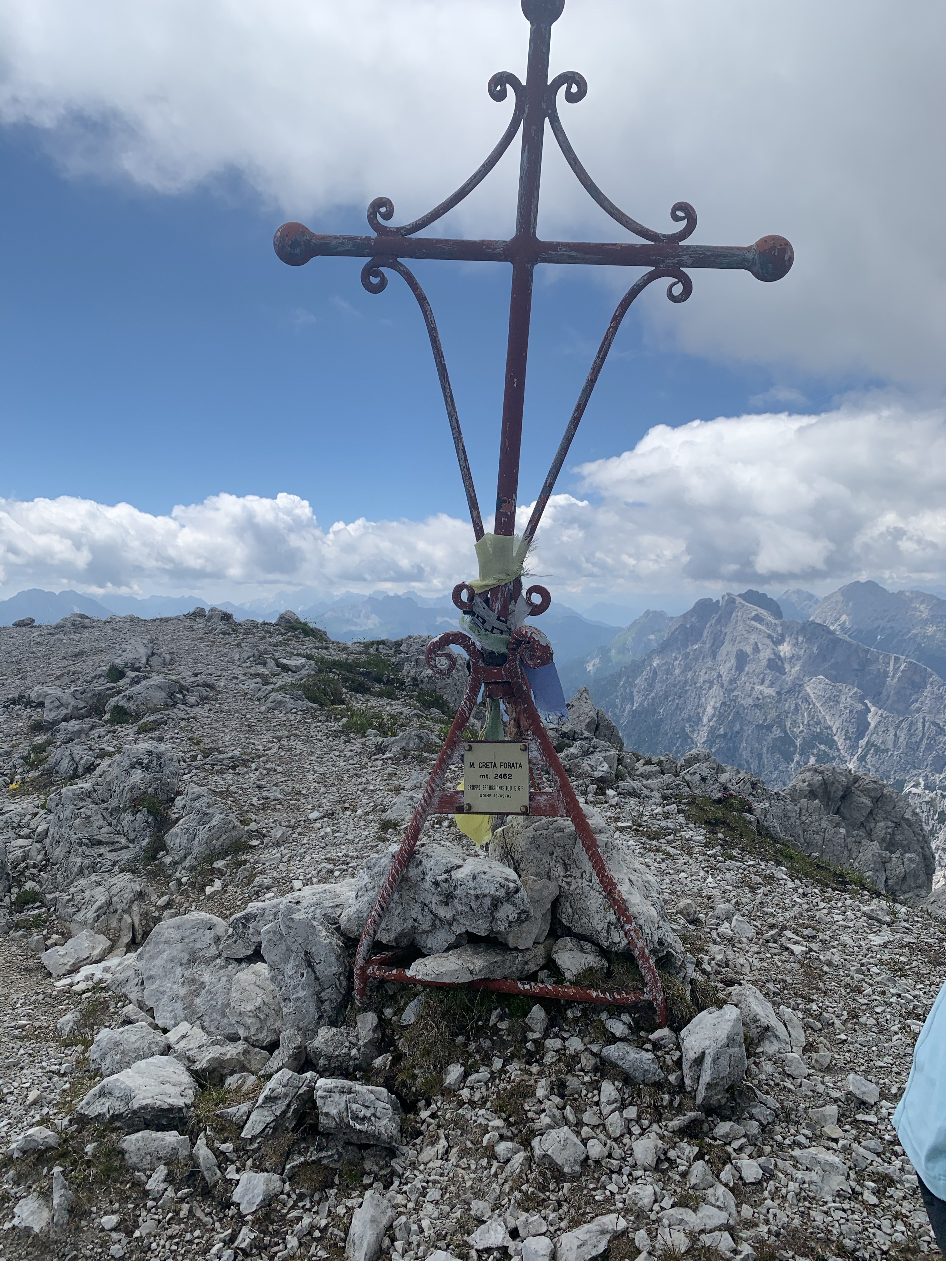 Nach einem Ruhetag hatten wir uns als nächstes Ziel den Monte CRETA Forata ausgesucht. Kein Klettersteig, aber eine anspruchsvolle Bergwanderung. Nach dem Frühstück ging es direkt vom Campingplatz los und wir wollten vorher an der Rezeption kurz Bescheid geben, dass wir 2 Tage länger bleiben. Aus diesem Kurz wurde etwas über eine Stunde 😀 In dieser Stunde haben wir gewartet, dann Bescheid gekriegt, dass es organisatorisch etwas komplizierter ist, dann einen neuen Platz zugewiesen bekommen, Gerda beladen, an Bussi angekoppelt, in 4 Zügen gewendet, wieder abgekoppelt, alles installiert, um dann los stiefeln zu können. Wie früher schon mal erwähnt, wir werden immer besser 😀