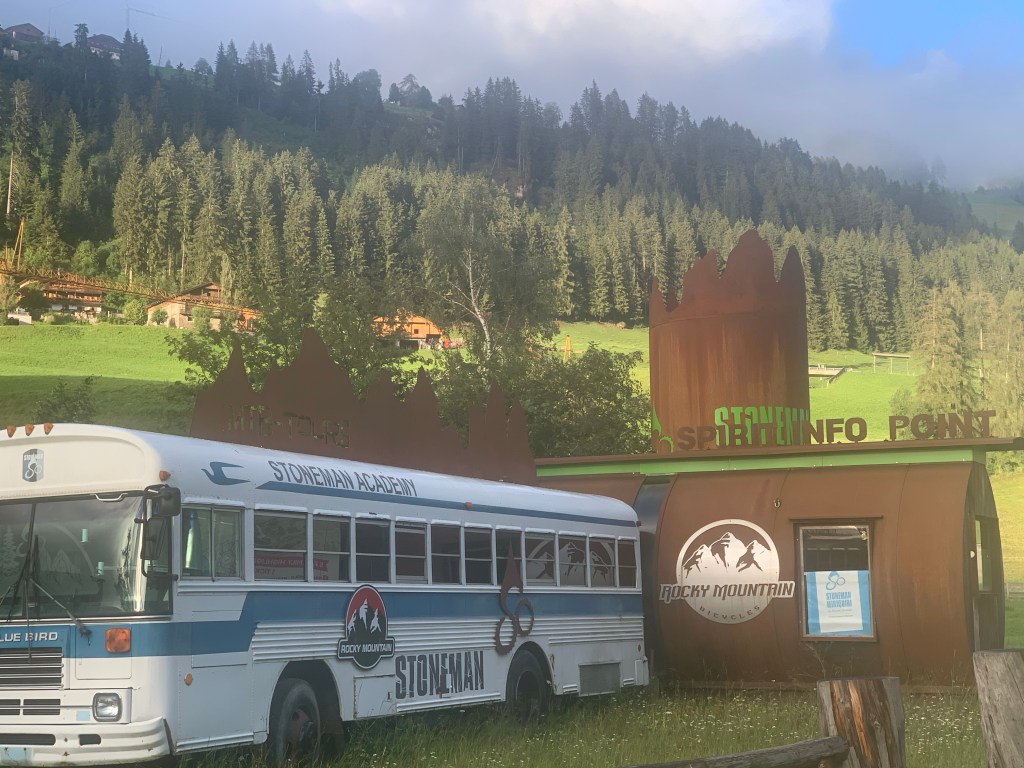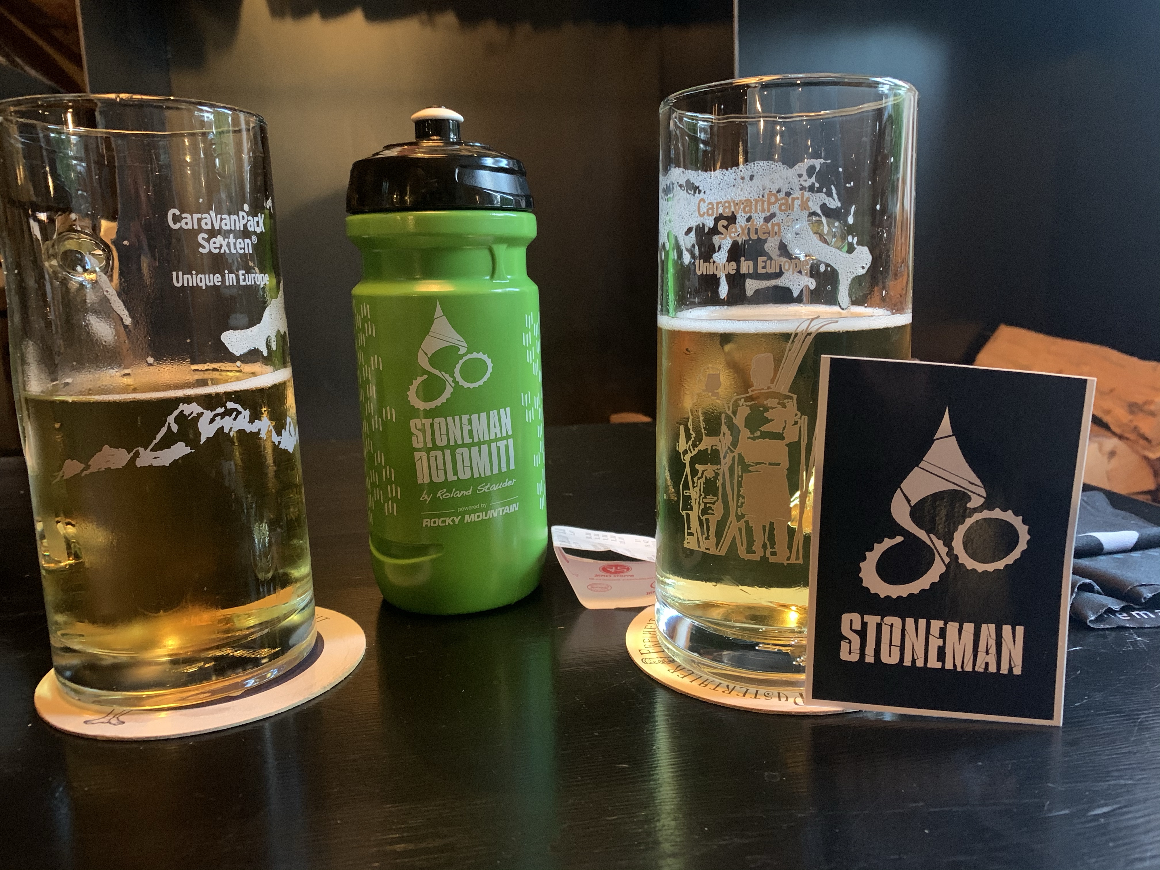 Da angekommen lernen wir jetzt Roland Stauder kennen. Der Roland ist ein ehemaliger Mountainbikeprofi und hat so einiges gewonnen in seiner Karriere. Wir haben mit ihm richtig nett geplaudert und ihm berichtet, dass Martin Promberger uns einiges vom Stoneman Tauristica vorgeschwärmt hat und uns so erstmal heiß gemacht hat. Wir haben uns vorgenommen, seinen Spuren in Österreich und der Schweiz (Stoneman Glaciara) weiter zu folgen 😀 Seine Idee, dass nicht die Leistung zählt sondern die Emotionen und das Naturerlebnis, können wir vollkommen bestätigen. Es war eine Challenge, aber das, was wir gesehen haben, ist eingebrannt fürs Leben. Chapeau und Dankeschön, Roland, auch für die schöne Begegnung in Sexten. Wir werden auch bei dir weiter Bericht erstatten. Die silberne Trophäe reist jetzt mit.