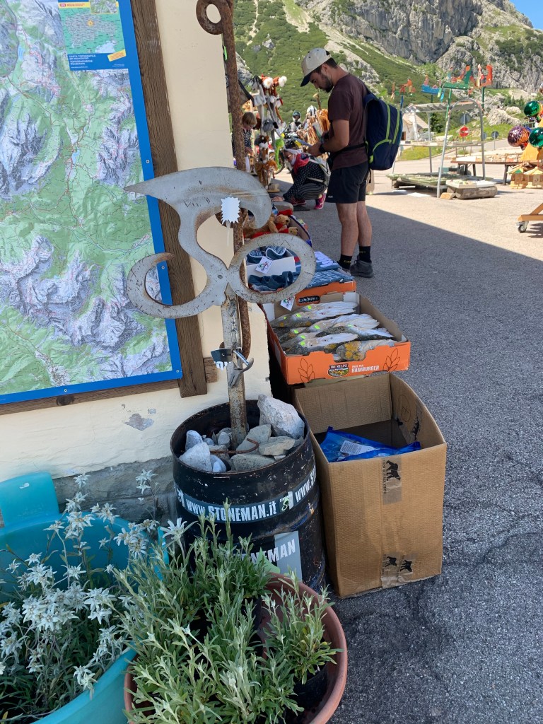 Oben auf dem Passo Falzarego haben wir einen Kaffee und nach etwas durchfragen auch unsere Stempelautomaten gefunden…