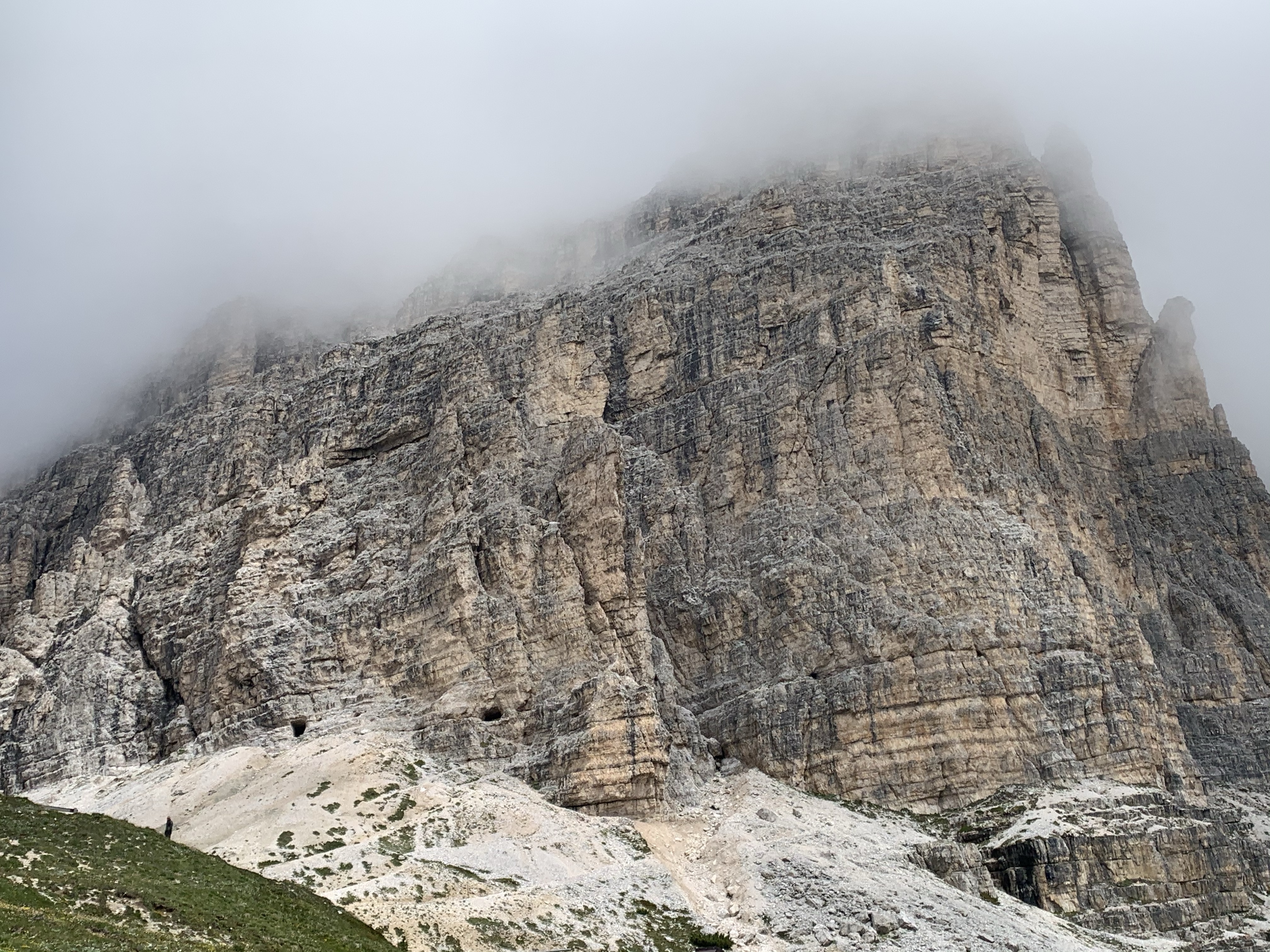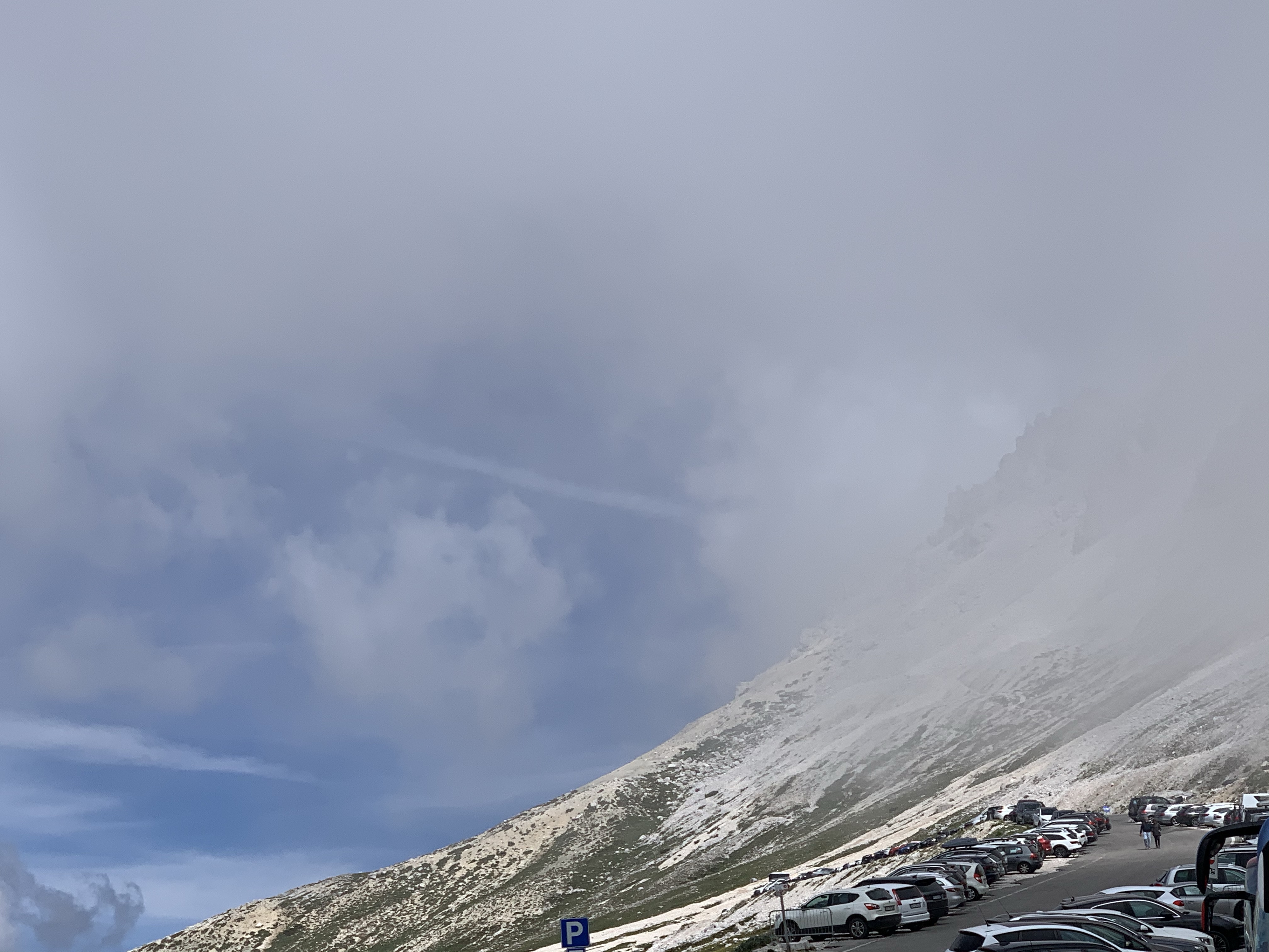 So… Vorgeplänkel an Tag 2 haben wir hinter uns gebracht. Ab jetzt wird es Ernst 😑 Hinter dem Misurinasee kommt der Abzweig zur Auronzohütte, Tre Cime di Lavaredo (2320 m). Auf 7,2 Km fährt man 628 Hm. Hört sich erstmal easy an, aber auf diesen 7,2 Km geht es teilweise auch noch mal runter. So kommt es, dass man auf den letzten 4 Km nur noch 12 und 13% Steigung fährt und stellenweise noch darüber. Nach Strma Reber und Monte Zoncolan erschüttert einen das nicht mehr. Oder so wie Sigrid meint: Nach den „Druckpausen“ und Krämpfen von gestern und mit der falschen Übersetzung am Rad ist das genau die Extra-Herausforderung, die Martin braucht.
