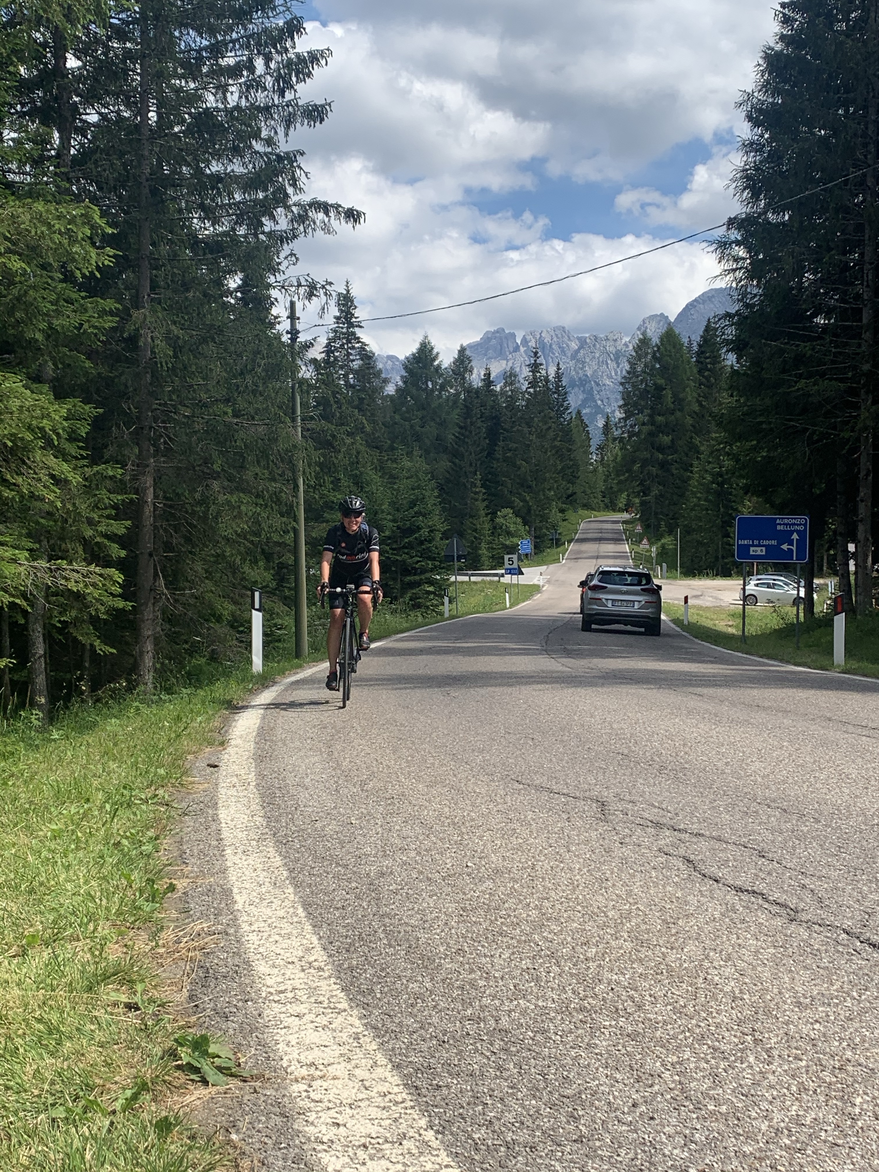 Direkt nach Auronzo di Cadore geht es in den Passo San Antonio (1489m). 8,5 Km lang und 683 Hm, auch hier wieder etwas verräterisch, weil zwei Teilstücke runter gehen, die Steigung liegt deshalb auch hier oft und lange über 10% und teilweise wieder bei 15%. Trotzdem kommt die Passhöhe schneller als erwartet und es liegt nur noch einer vor uns 😀
