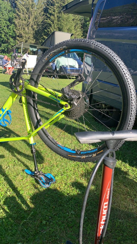 Da wir natürlich nicht so schnell aufgeben und uns vorbereiten auf Touren im Salzburgerland mit Michi und Martin, haben wir schon die nächste Tour im Visier. Es soll zum Gasthof Glocknerblickhütte gefahren werden. Wetter sollte super werden und wir freuten uns schon. Nachdem wir gefrühstückt haben, die Räder aus dem Bussi geholt … Mist…! ein platter Hinterreifen bei Sigrid 😌