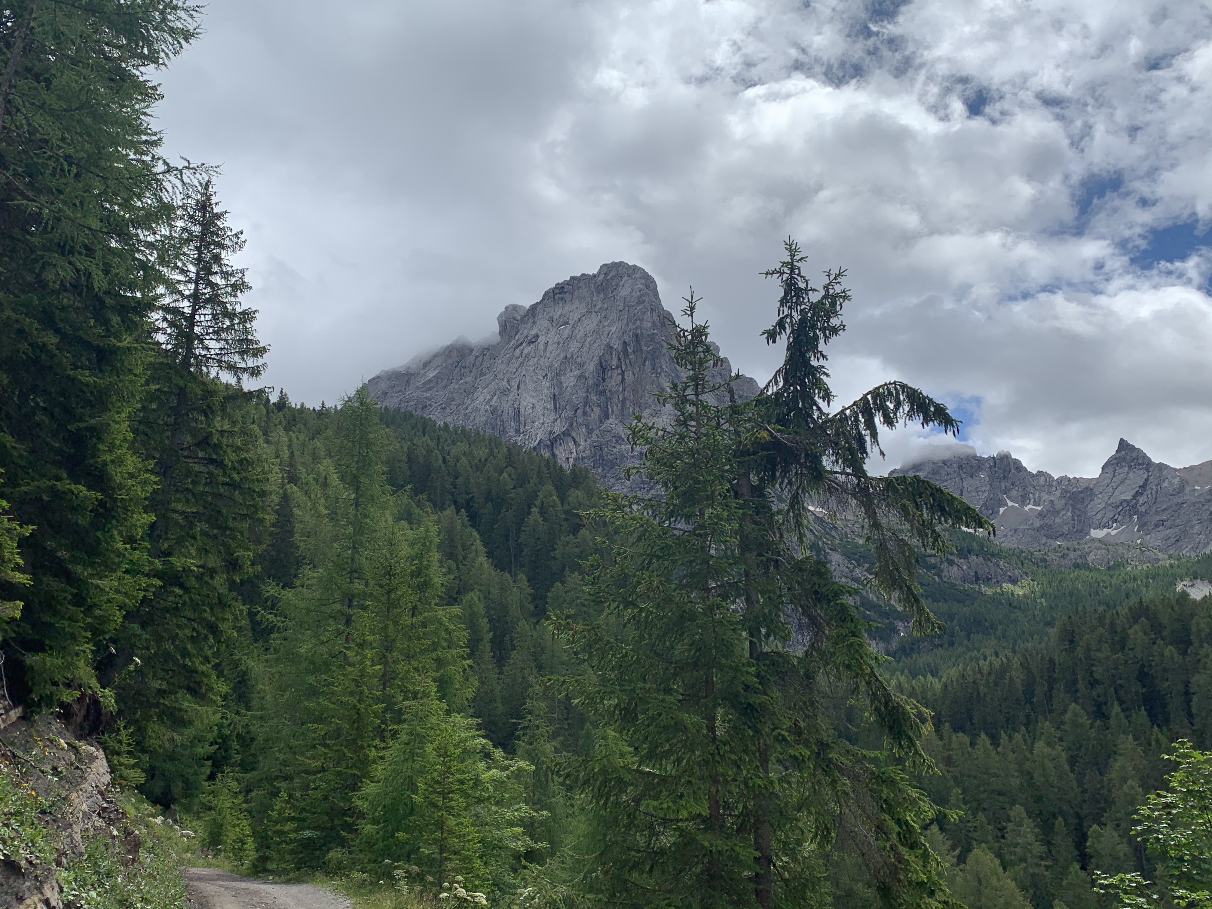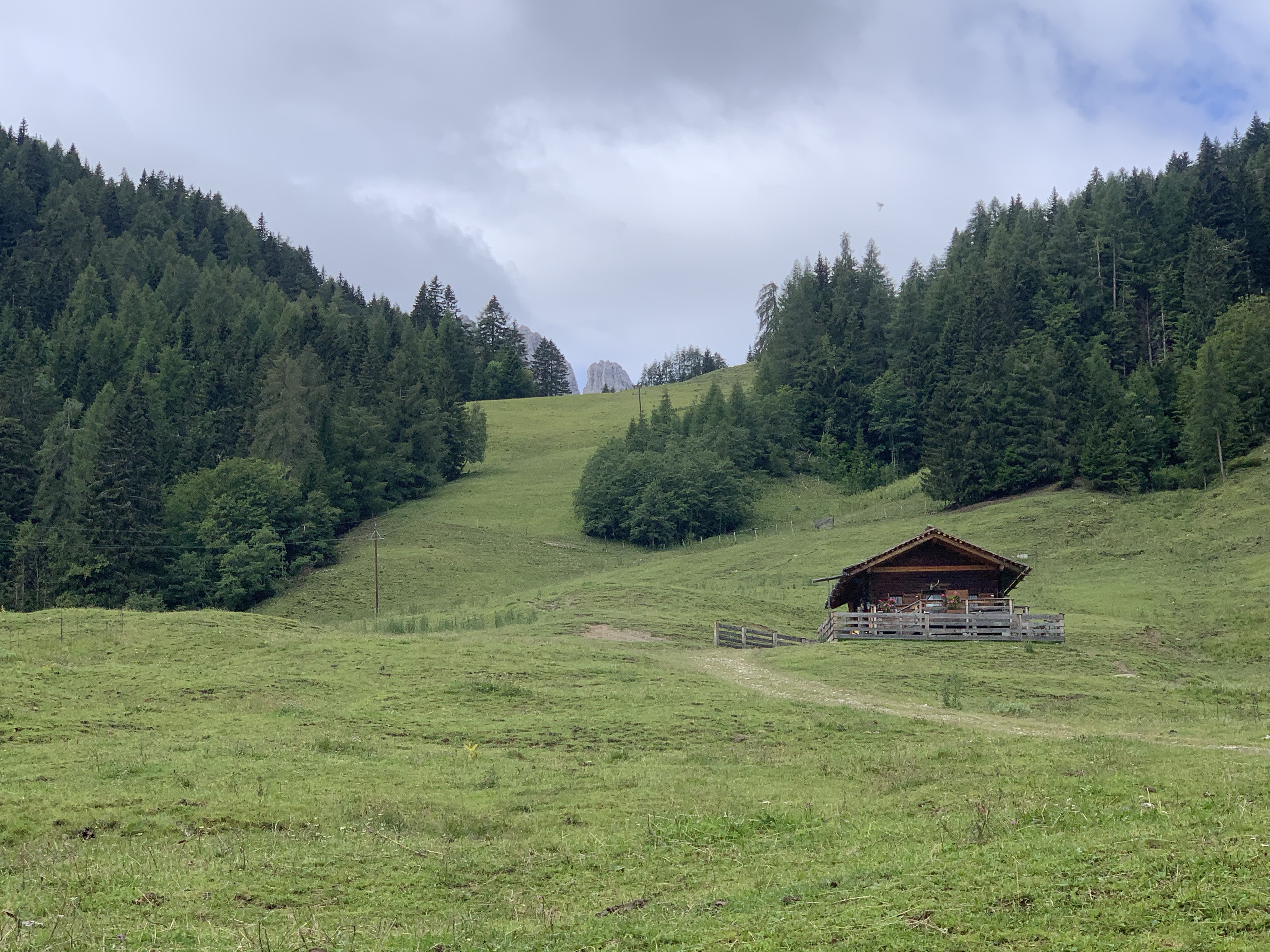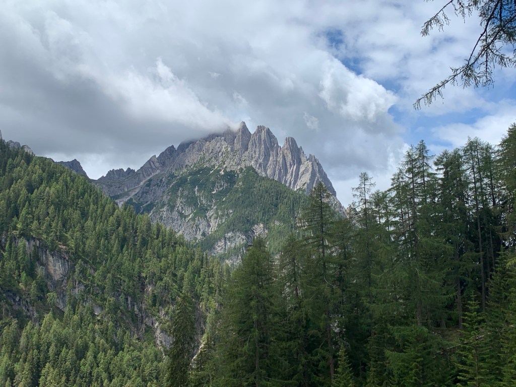 Das Wanderparadies haben wir nach dem erfolgreichen Probelauf am Morgen ausprobiert. Direkt vom Campingplatz ging es los über eine Abkürzung durch den Wald, um auf den Wanderweg zu kommen. Abkürzung bedeutet bei uns meistens Abenteuer. Auch diesmal 😇 Gestrüpp, steile Abhänge, kaum sichtbare Wege und ignorierte Verbotsschilder brachten uns dann nach einer guten Stunde auf den Weg. Den Markierungen folgend waren wir eine Stunde später bei der Dolomitenhütte. Da haben wir erstmal eine kurze Rast eingelegt.