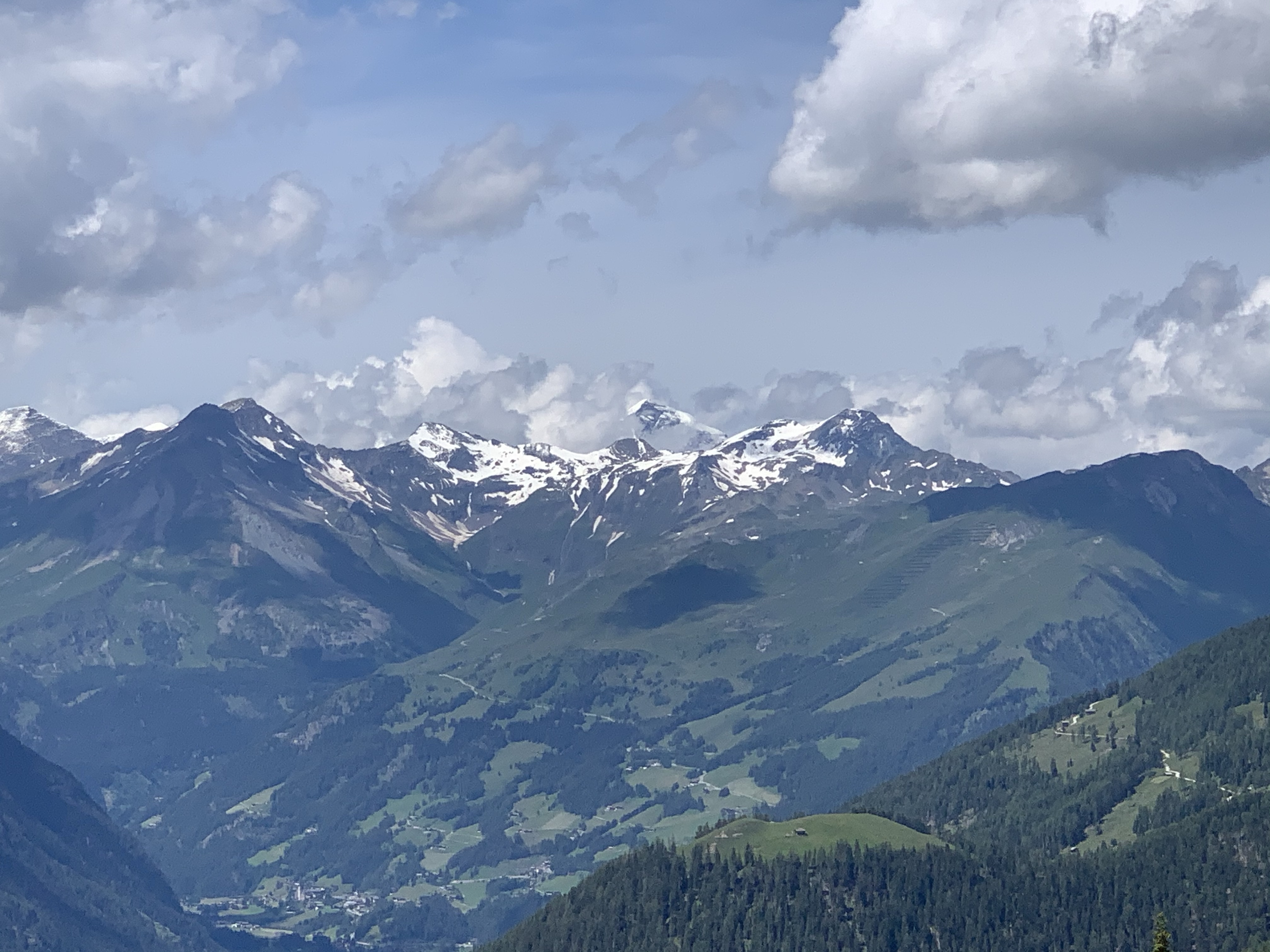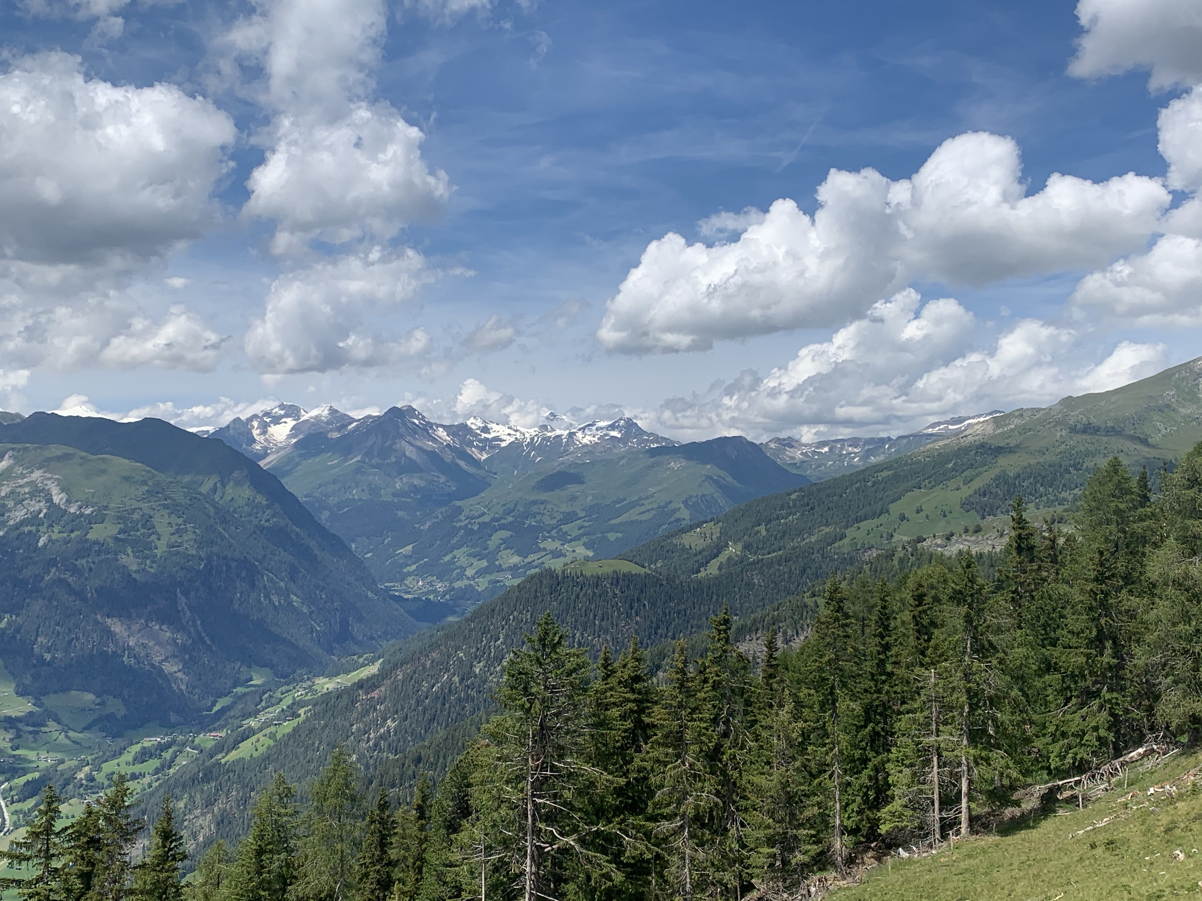 Nach einer kurzen Abfahrt und etwas off-road suchen, sind wir dann über die Großglocknerstrasse zum nächsten Anstieg gekommen, 12 Km und 1100 Höhenmeter. Die Temperatur lag mittlerweile über 30 Grad und der Schweiß lief aus allen Poren, die Blicke waren atemberaubend und oben gab es Kasnockensuppe, weniger zum erwärmen, dafür um die Flüssigkeit und Elektrolyte nachzuschieben 🙃