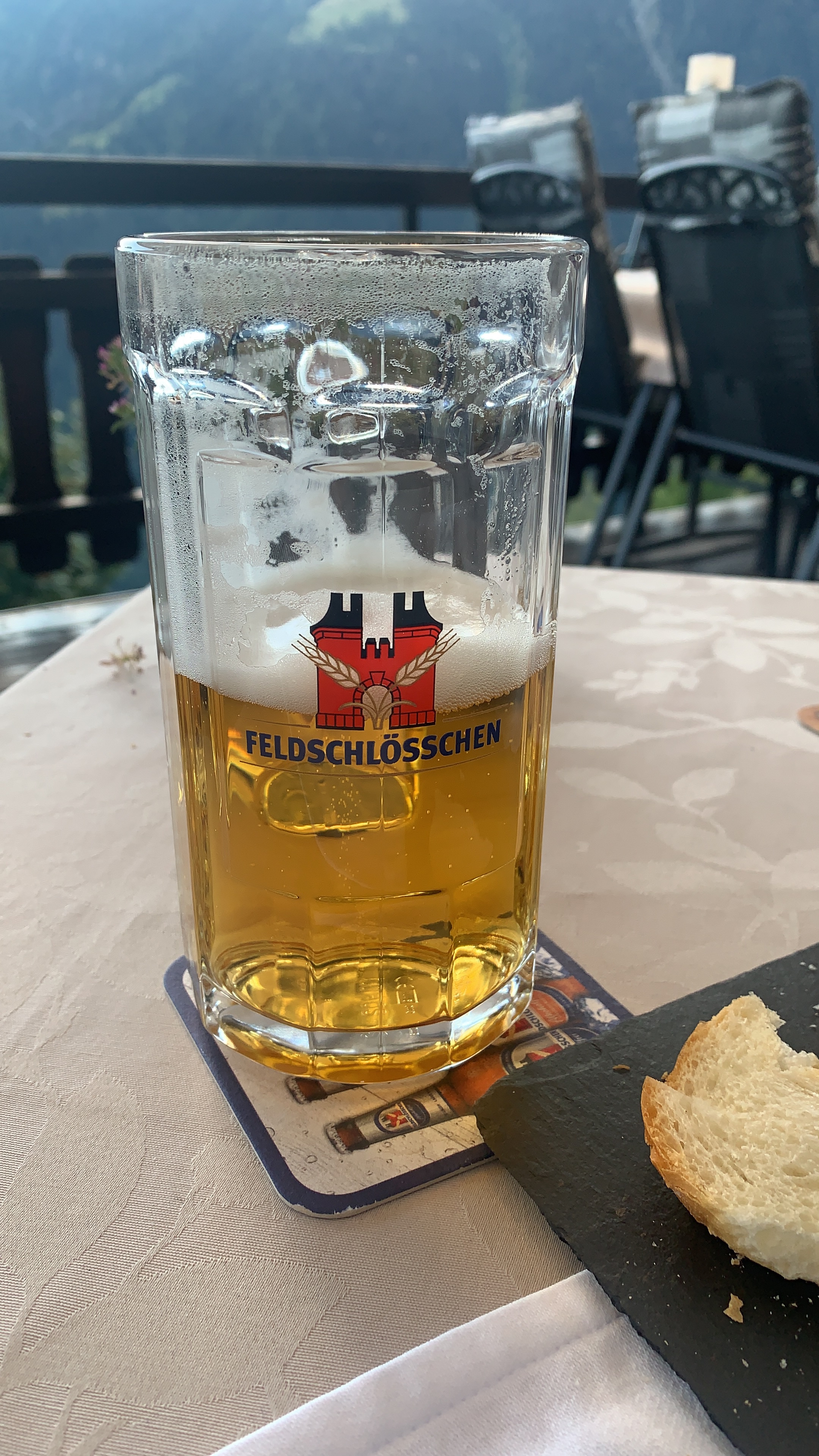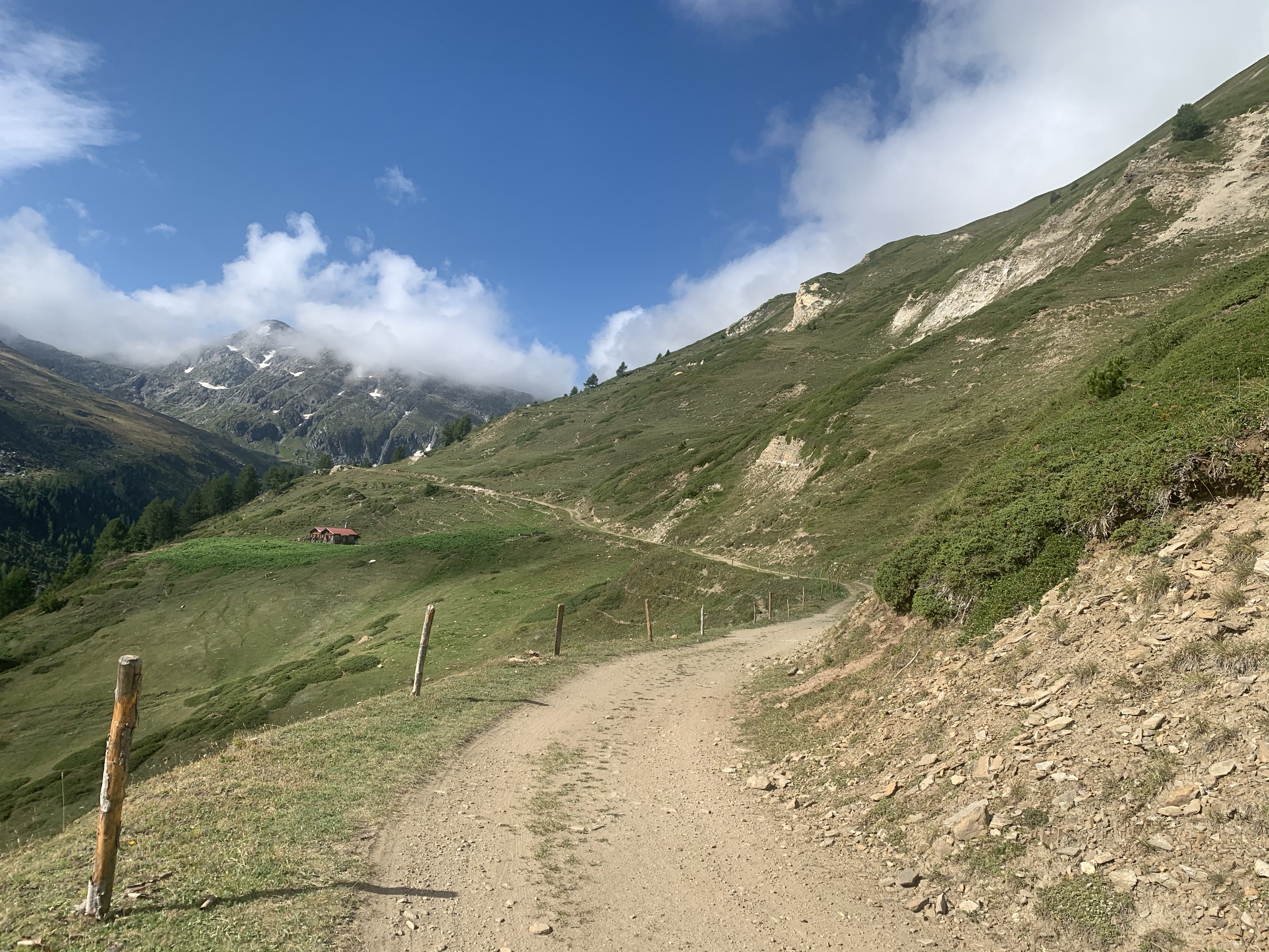 In Reckingen wieder gestempelt und auf ging es zum letzten Teil des ersten Tages nach Bellwald. Nur noch 10 Kilometer und 450 Höhenmeter, hörte sich erstmal einfach an, aber wie wir beiden mittlerweile wissen, sagen durchschnittliche Steigungsprozente oder Kilometerangaben mit Höhenmetern nichts aus über die Strecke, die kommt. Es fing langsam abfallend an, dann kamen ein paar flache Kilometer und dann… Genau die Höhenmeter mussten noch kommen und die Kilometerzahl wurde immer weniger. Da fällt sogar uns das positive Denken etwas schwer 😀 Trotzdem haben wir das Ziel erreicht und uns auf der Hotelterrasse ein Bierchen gegönnt 😎