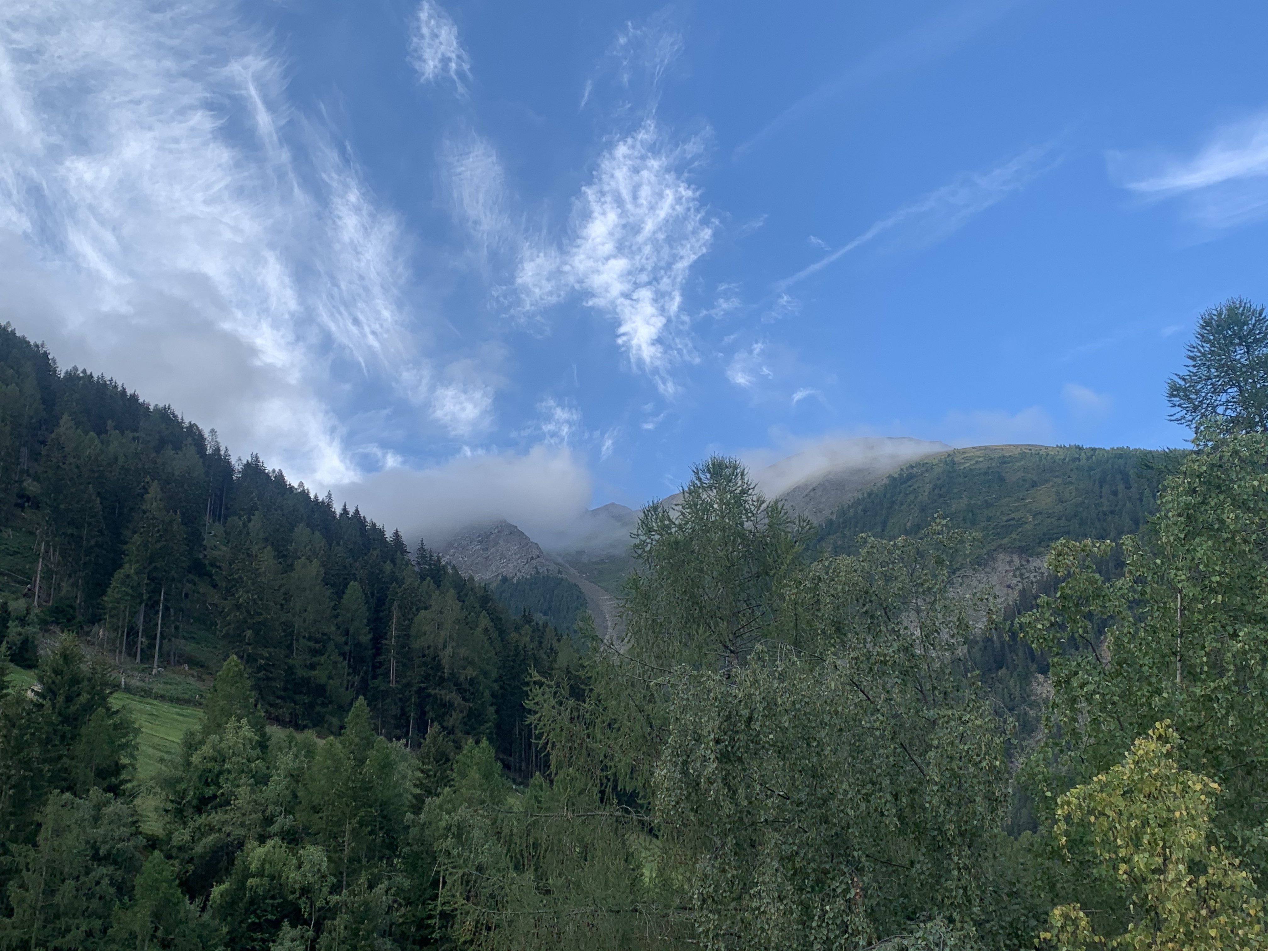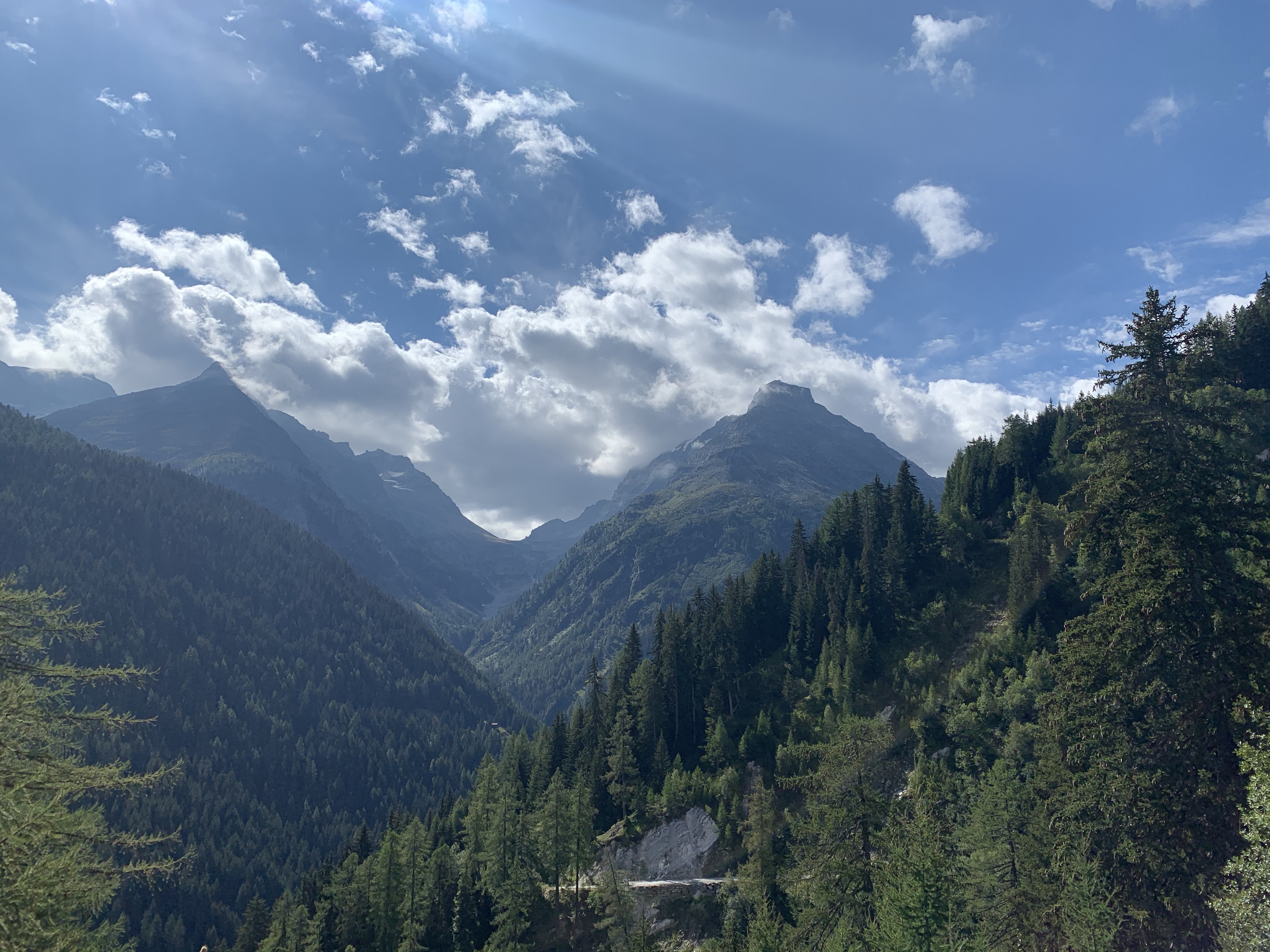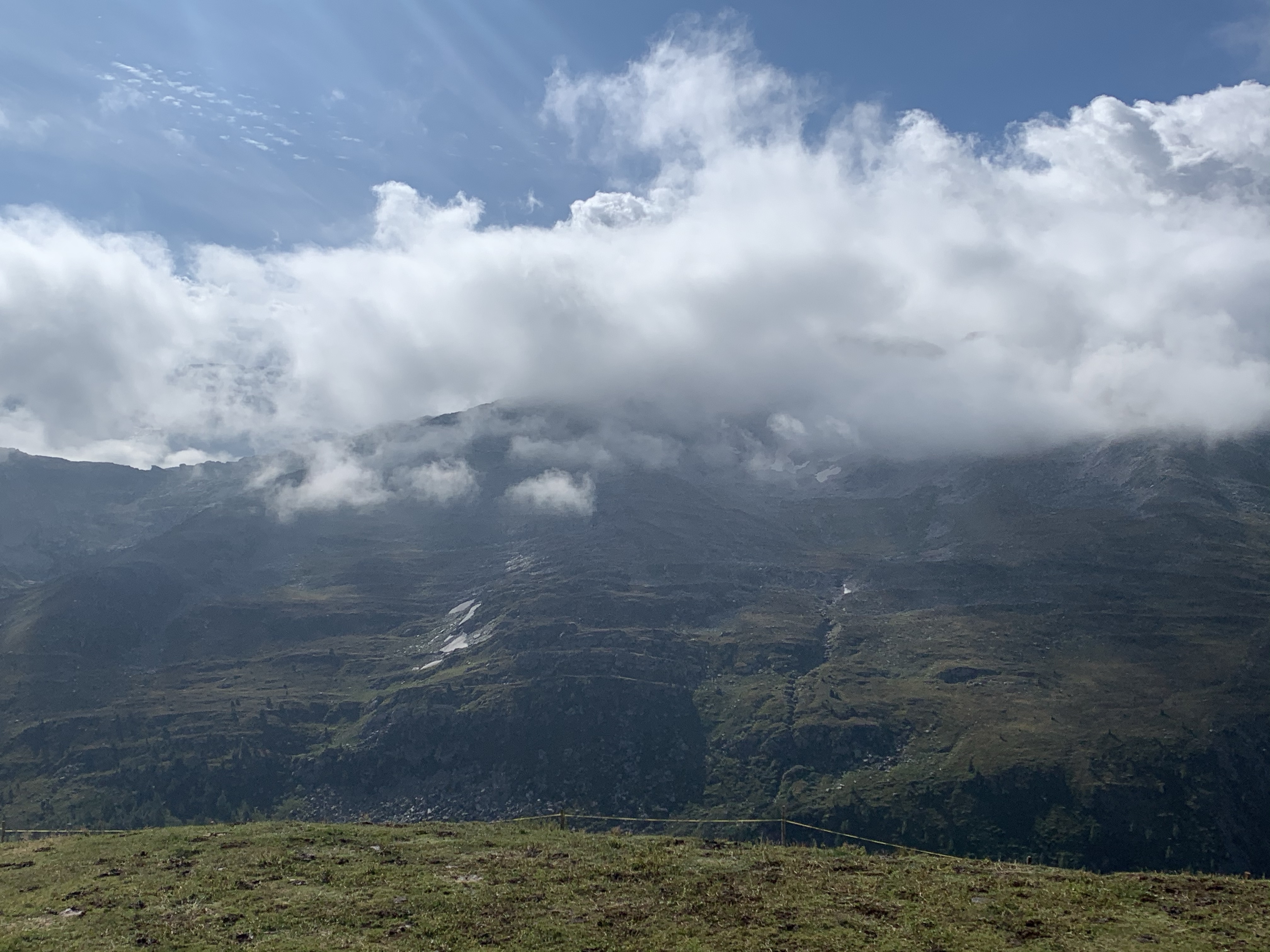 Montag sind wir früh aufgestanden und schon kurz nach 7 sind wir mit den MTB‘s losgefahren. Die komplette Strecke ist 127 Km lang und es werden dabei 4700 Höhenmetern überwunden. Wir wollen schon wie in den Dolomiten das Ganze in 2 Tagen absolvieren 😀 Die Strecke führte direkt am Campingplatz vorbei, das war schon mal easy 😇 Obwohl es sofort in die erste Steigung hineinging. Im Prinzip ging es mit ein paar flacheren Kilometern zwischendurch direkt aufs Breithorn hinauf. Da haben wir direkt schonmal über 1500 Hm gemacht.