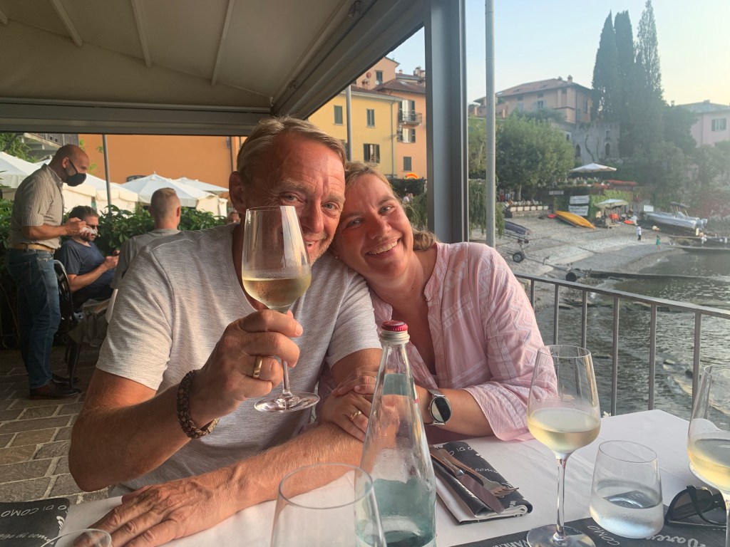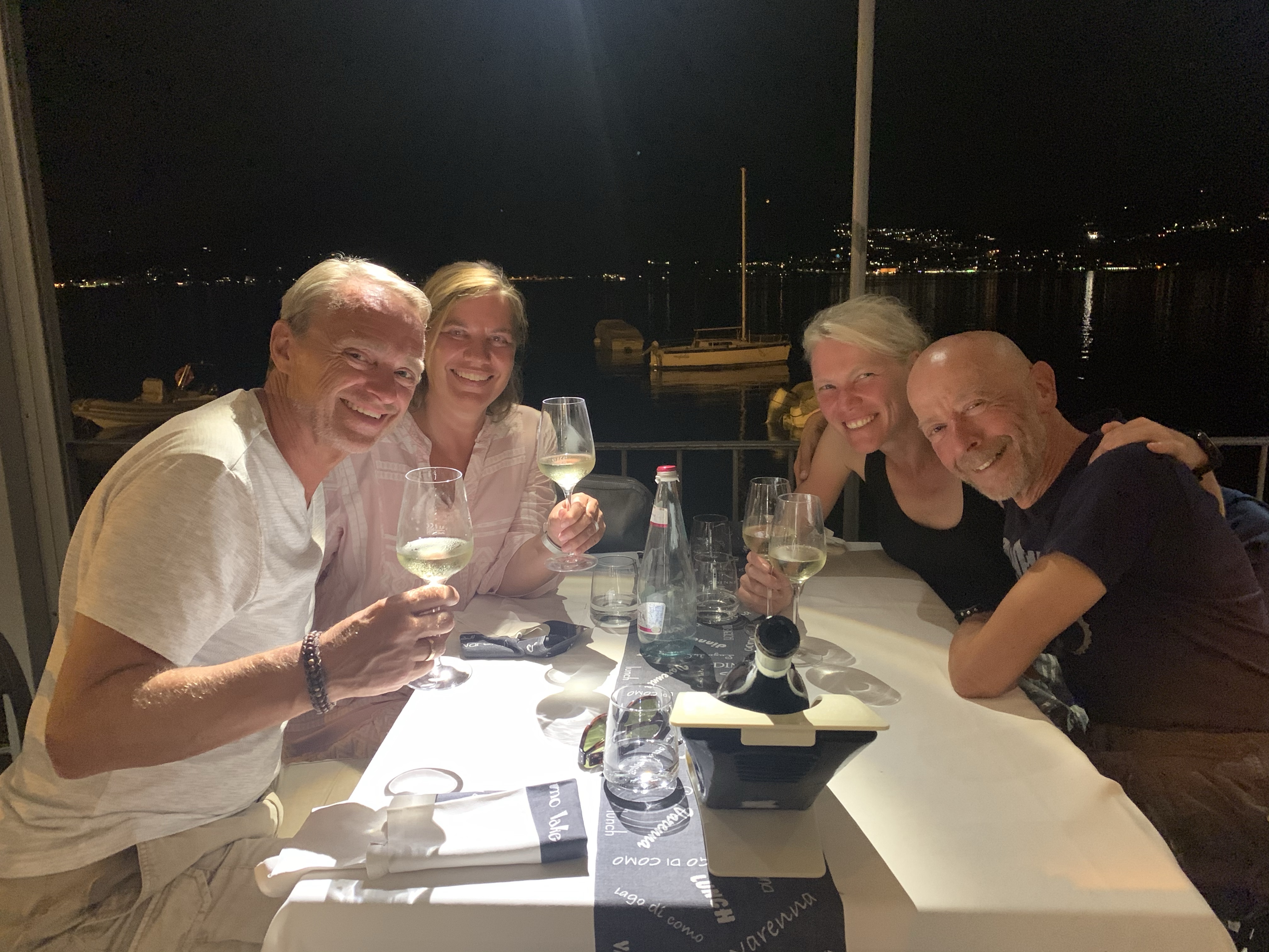 Obwohl Martin immer Glück hat, war der Freitag ein kompletter Regentag. Da kamen Erinnerungen an 2002 hoch an einen Regentag mit Olaf und Carsten, als sie von Lugano eine Trainingsfahrt machten die am Comersee entlang ging. Der Comersee wirkte grau in grau auf ihn und jetzt bei der 2. Chance zeigte er sich wieder so 😳 Zum Glück waren 4 strahlende Menschen zusammen und da kommt kein Regen gegen an. Schön und lecker gespeist, ein bisschen Wein, schöne Gespräche, einfach wunderschön 😊