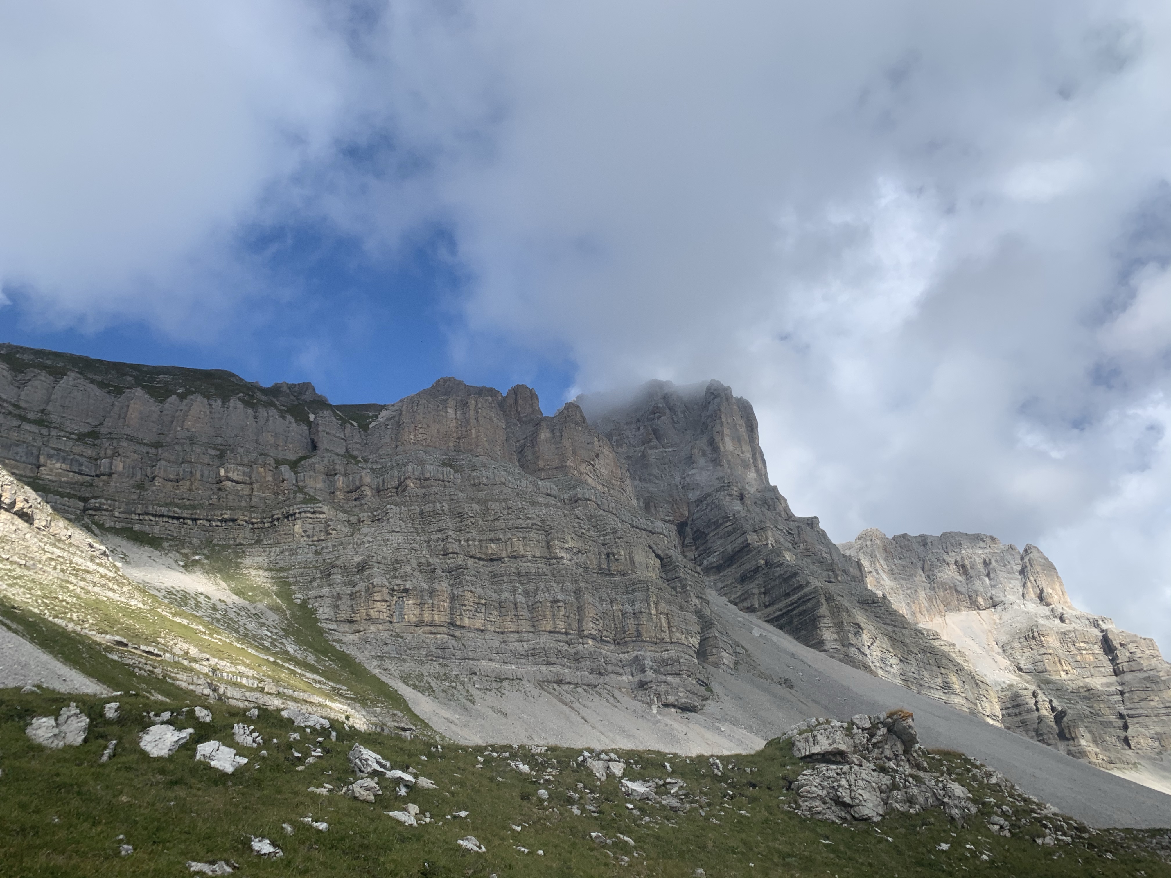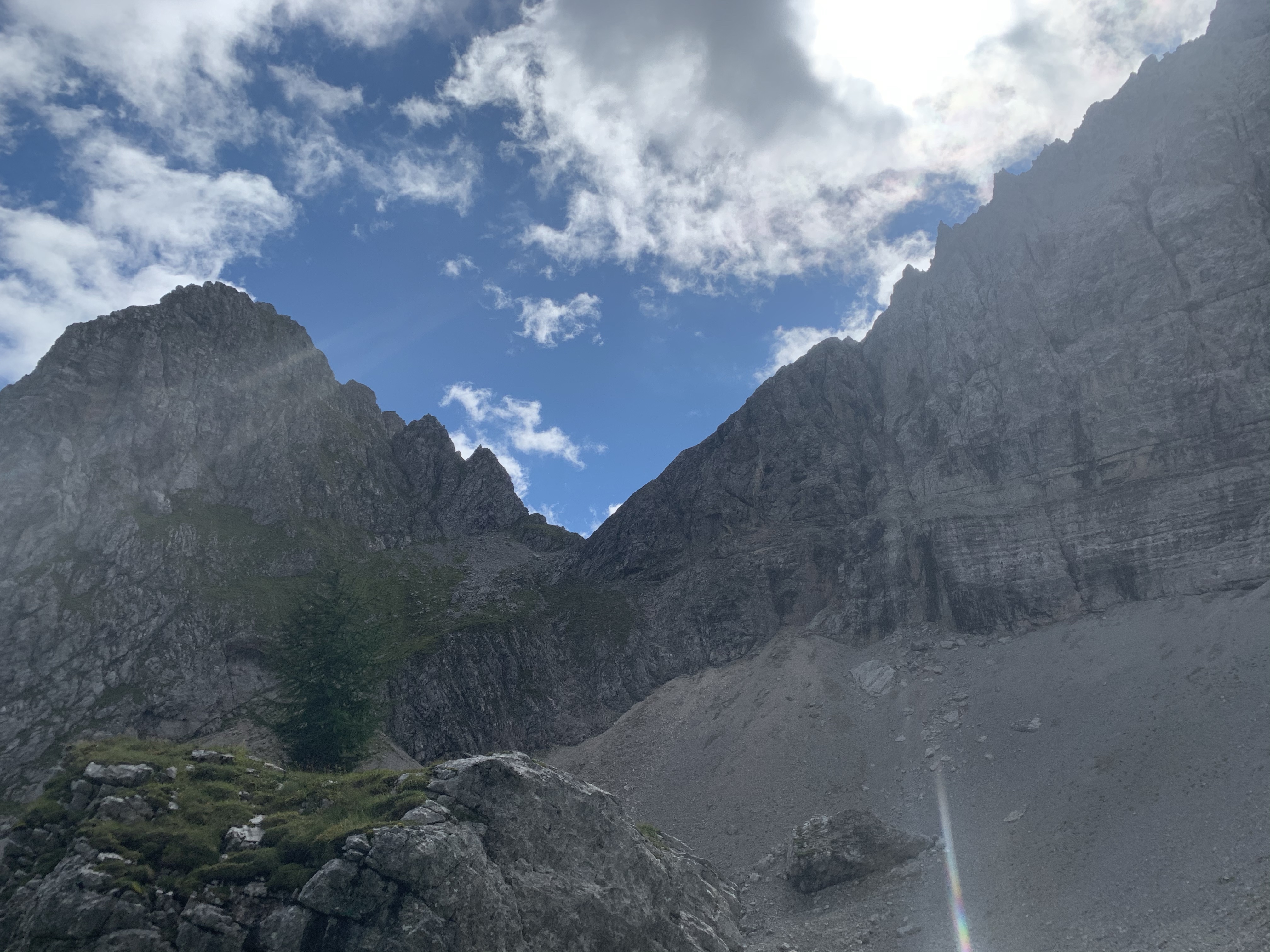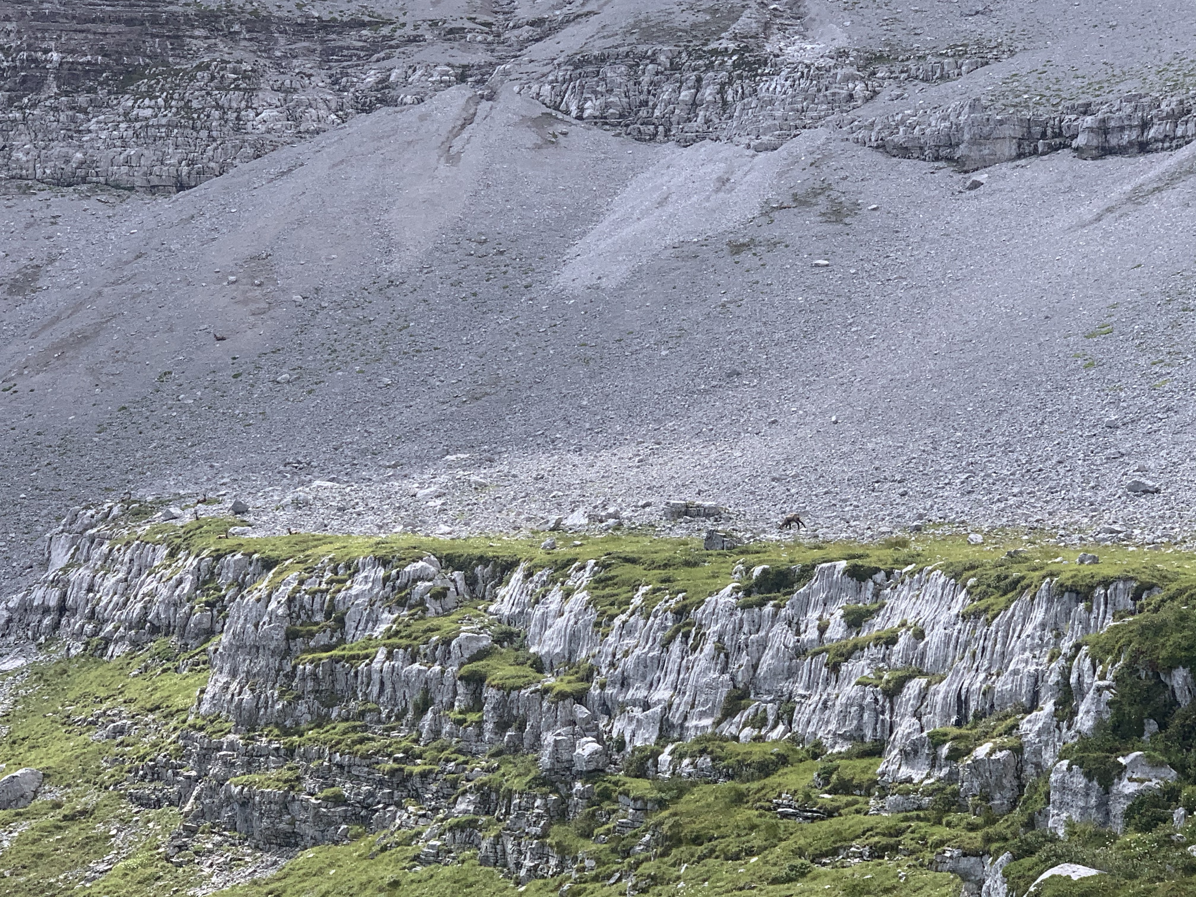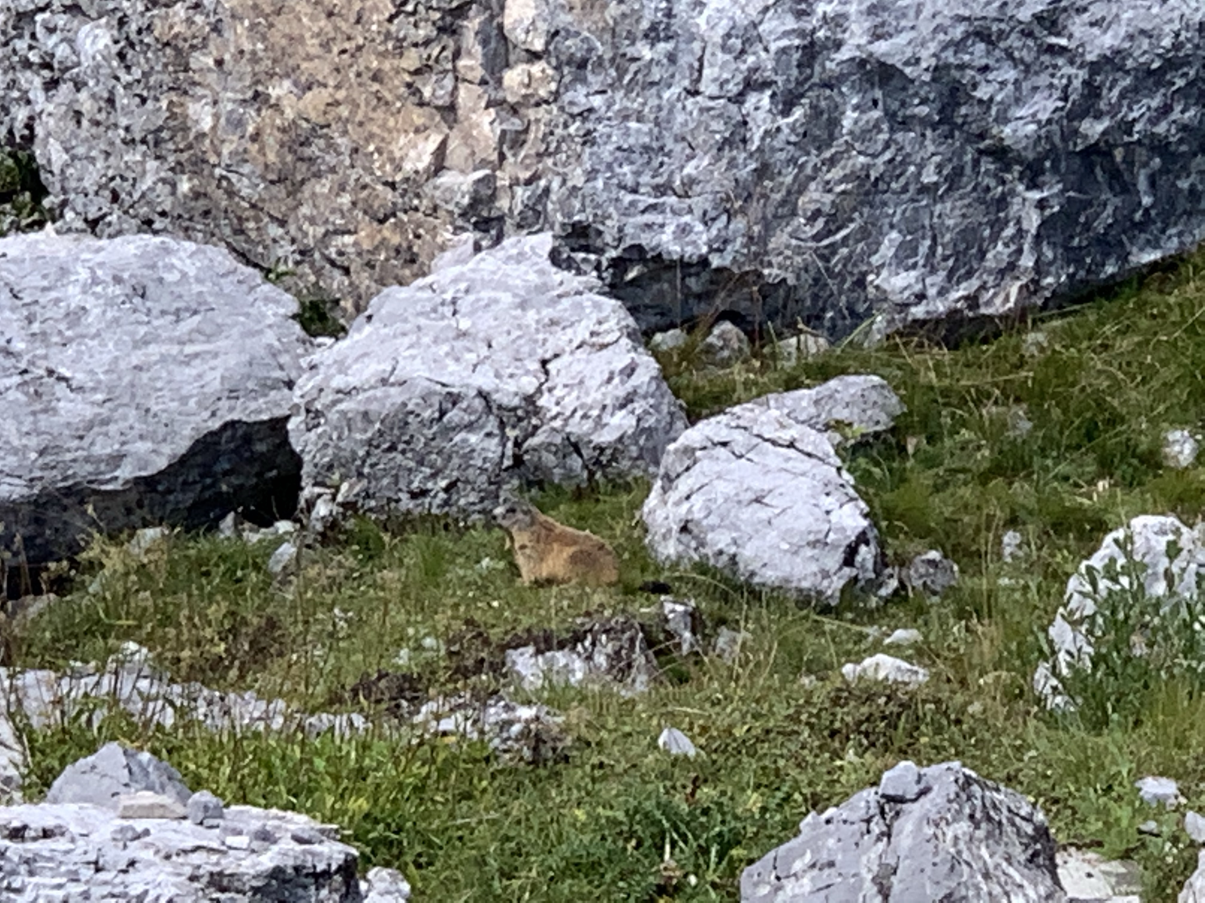 Oben angekommen wird die Freude über unsere Entscheidung richtig groß, als wir sehen wie große Gruppen losziehen auf den Weg, den wir auch gegangen wären. Da wurde uns klar, dass eine Berghütte mit 115 Schlafplätzen auch erstmal ausgebucht sein muss! Es hätte Wartezeiten an Steigen gegeben, sicherlich auch nicht schön. Am Ende unserer Tour haben wir uns dann noch mal darüber gefreut, da wir auf unserer Runde keinen einzigen anderen Menschen getroffen haben, nur in weiter Entfernung insgesamt 6 Wanderer gesehen haben. Dafür aber einiges an Murmeltieren und Gemsen. Wobei die Murmeltiere sich wahrscheinlich tot gelacht haben über wieder so einen Wanderer, der versucht, Murmeltierpfeifen nachzuahmen 😜