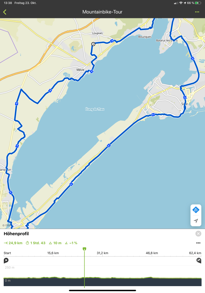 Einmal um den Étang de Thau herum fahren. Hörte sich easy und sauber an. 😉