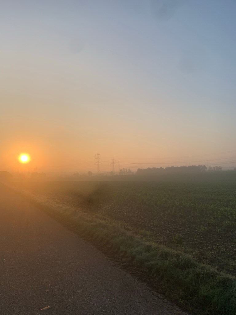 Am nächsten Morgen sind wir vor allen anderen aufgestanden und haben gut gefrühstückt, wobei Sigrid auch noch die „Hasen“-Butterbrote von Nora mitgegessen hat. Nora konnte später gar nicht glauben, dass wir schon weg waren. Ein paar Tassen Kaffee und um 7 Uhr saßen wir auf den Rädern auf dem Weg zu Mutti 😀