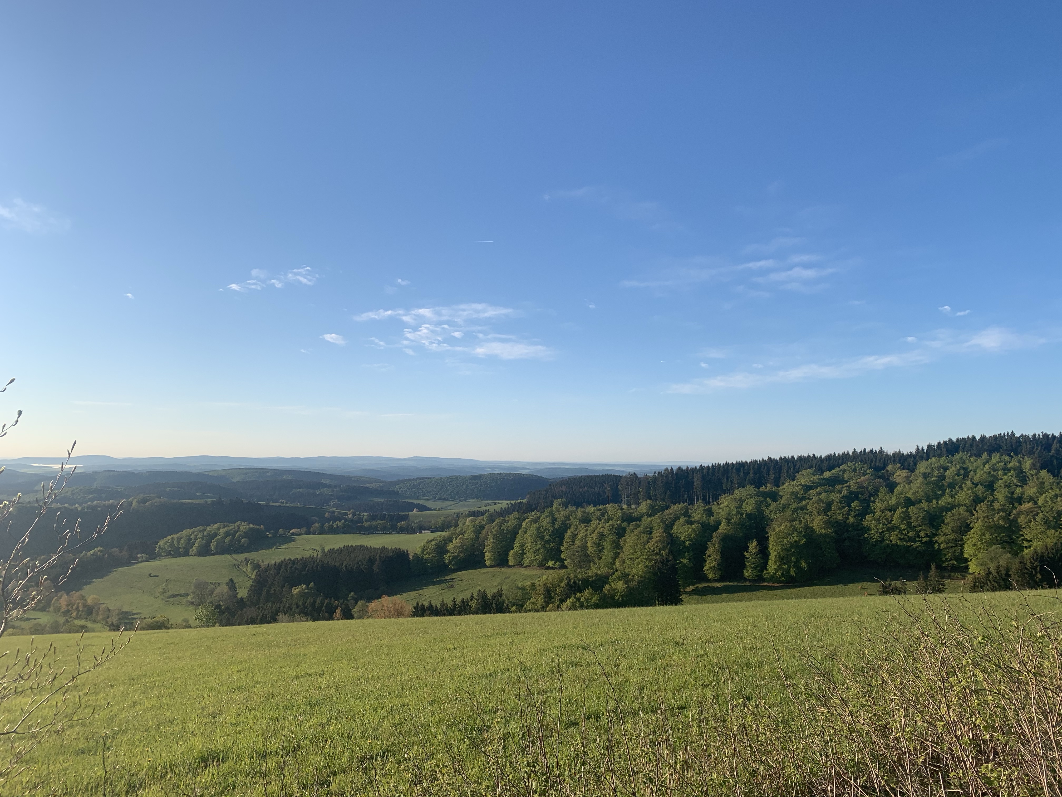 Der Weg führte uns durchs Dorf und den Wald bis auf die Niedersfelder Hochheide. Hier befinden sich die touristischen Highlights Hoppeckequelle und der Goldene Pfad, direkt daneben der Einstieg zum Gipfel des Clemensbergs.