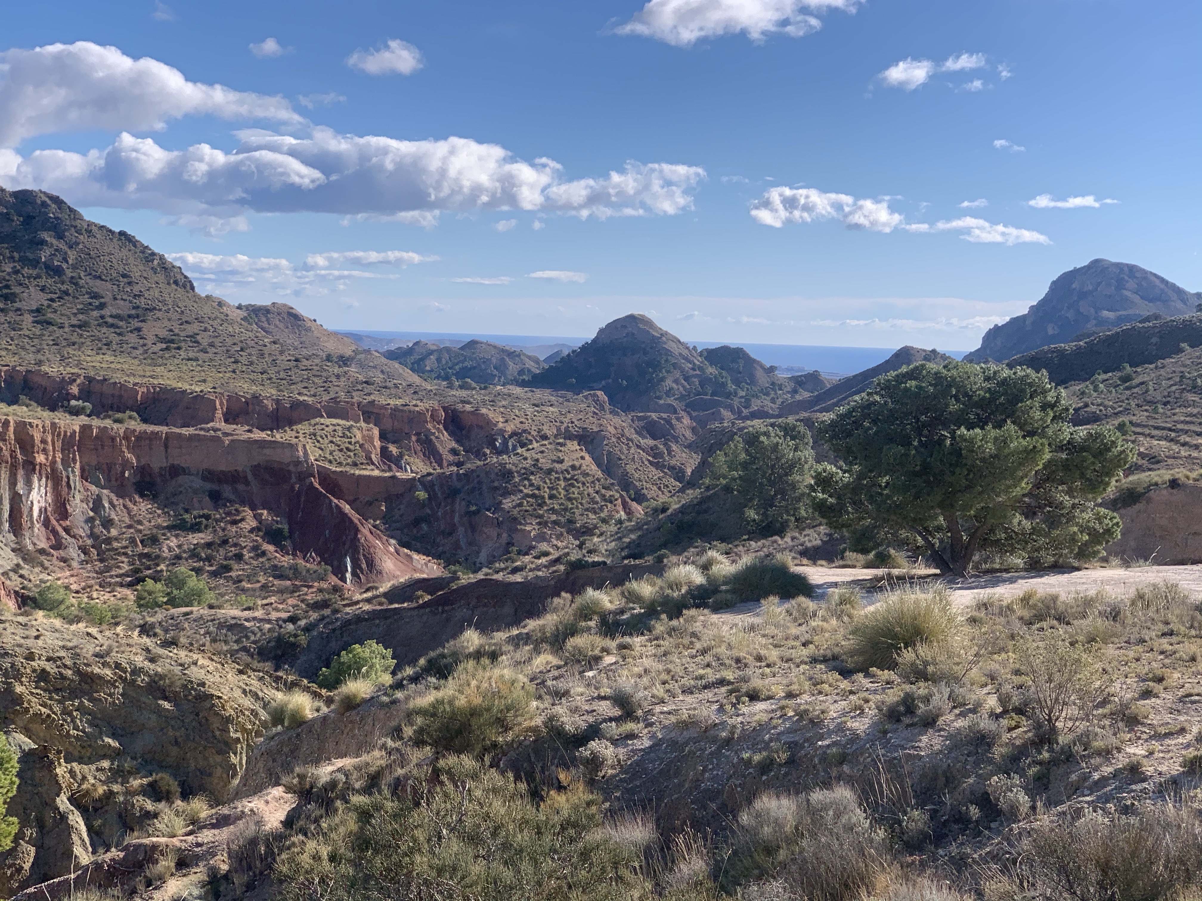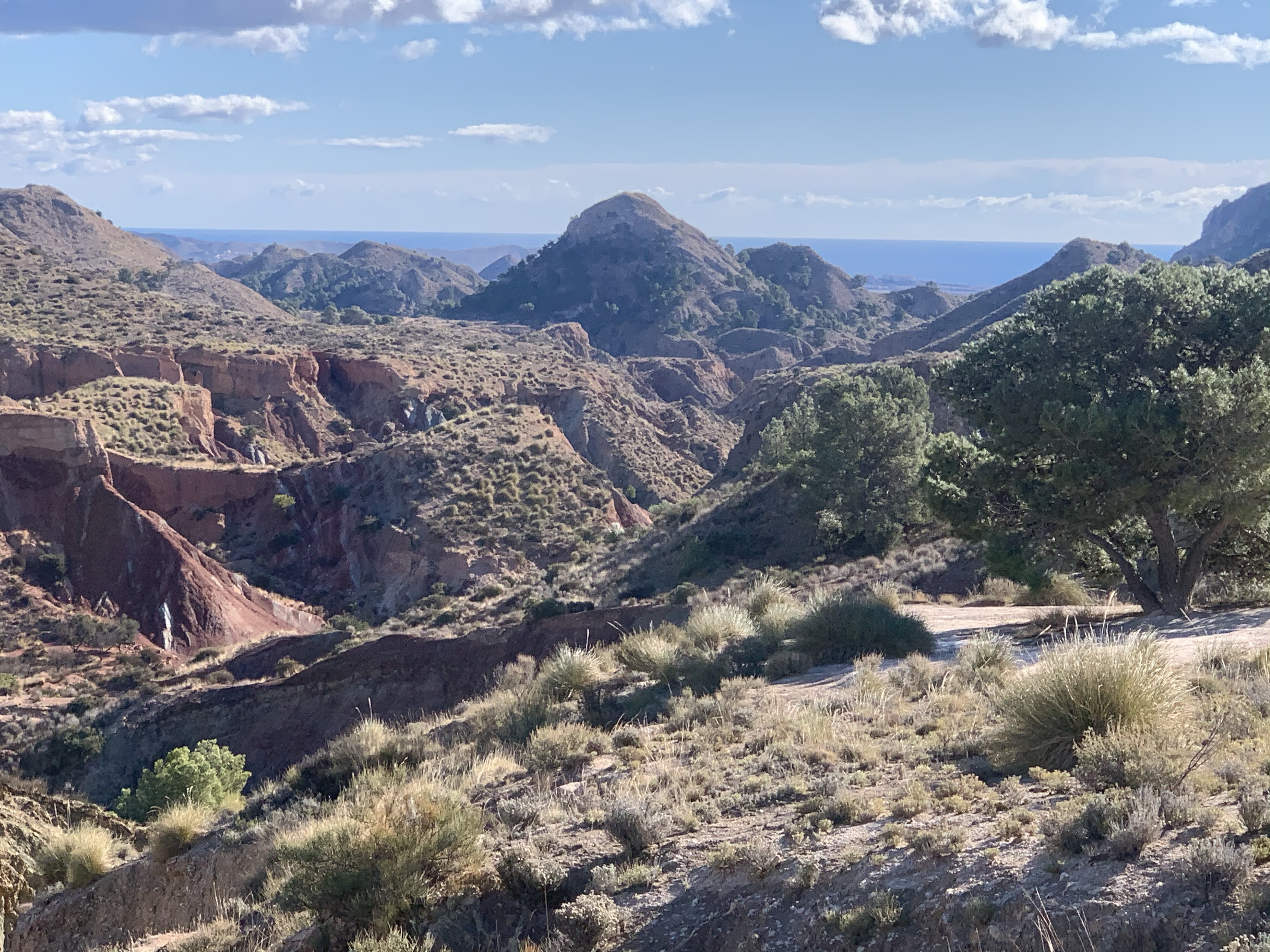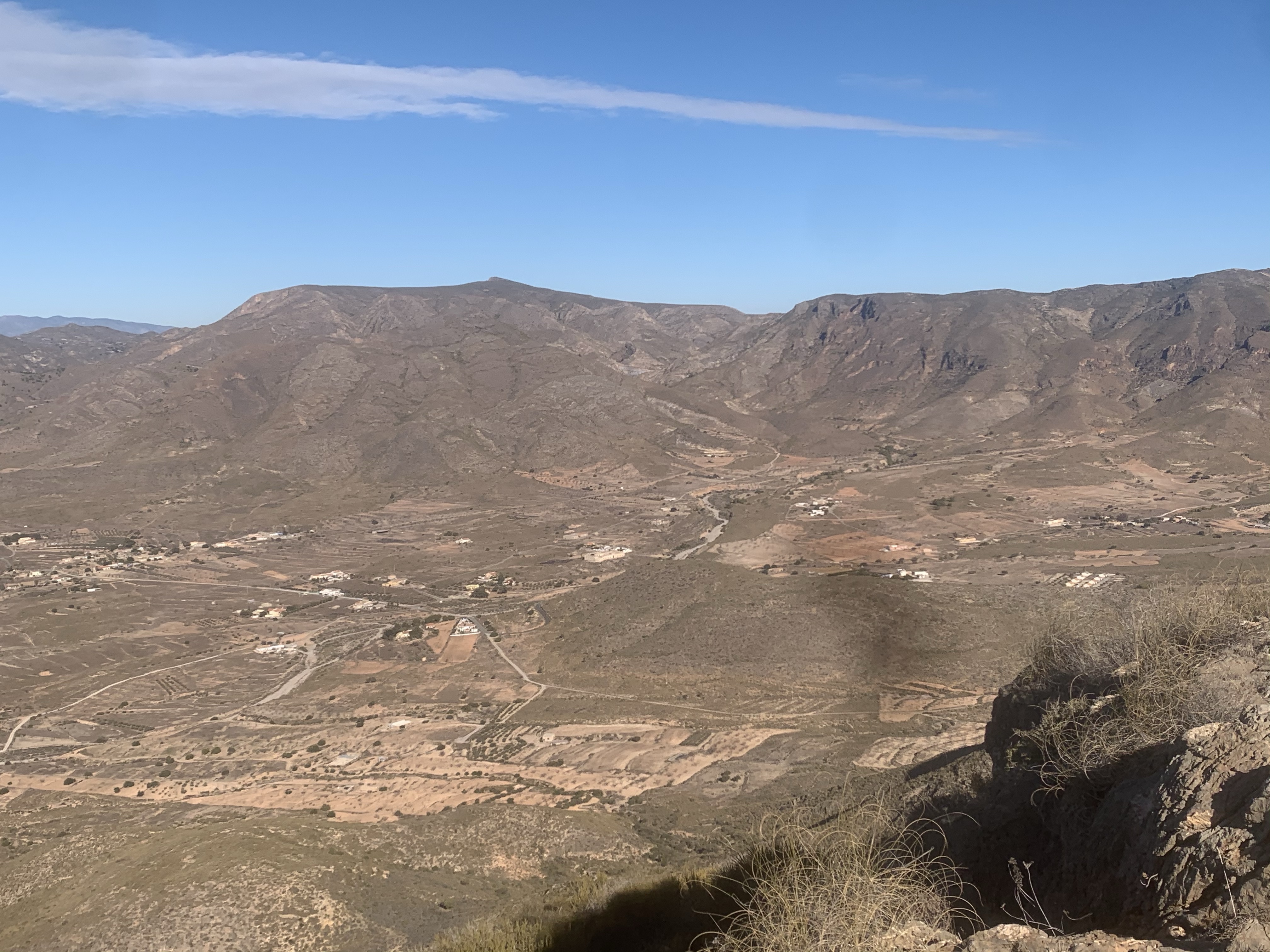 Bevor die Abreise Anstand, gab es noch einen Radtag. Für viele von euch wahrscheinlich langweilig, für uns „leider geil“. Eine Tour, die uns erstmal über einen kleinen Pass führen wird, bevor wir zum Ende hin auf die Strecke stoßen, die wir am ersten Tag gefahren sind. Es fasziniert uns total, wie unterschiedlich die Landschaft hier ist. Von der Hauptstrasse links oder rechts abbiegen oder gerade aus, eröffnet sich immer ein komplett anderes Bild. Die Vegetation, die Felsformationen, die Plantagen alles ist komplett anders. Diesmal biegen wir rechts ab und statt Sandstein finden wir jetzt Kalkstein, statt Gewächshäusern gibts es Weinanbaugebiete. Der Weg zu unserer schon gefahrenen Strecke führt uns über ein Hochplateau mit Orangen- und Zitronenplantagen. Die Augen können sich einfach nicht satt sehen. In Gedanken sind wir heute bei Maria, da wir durch das Gebiet „los Navarros“ fahren 😀
