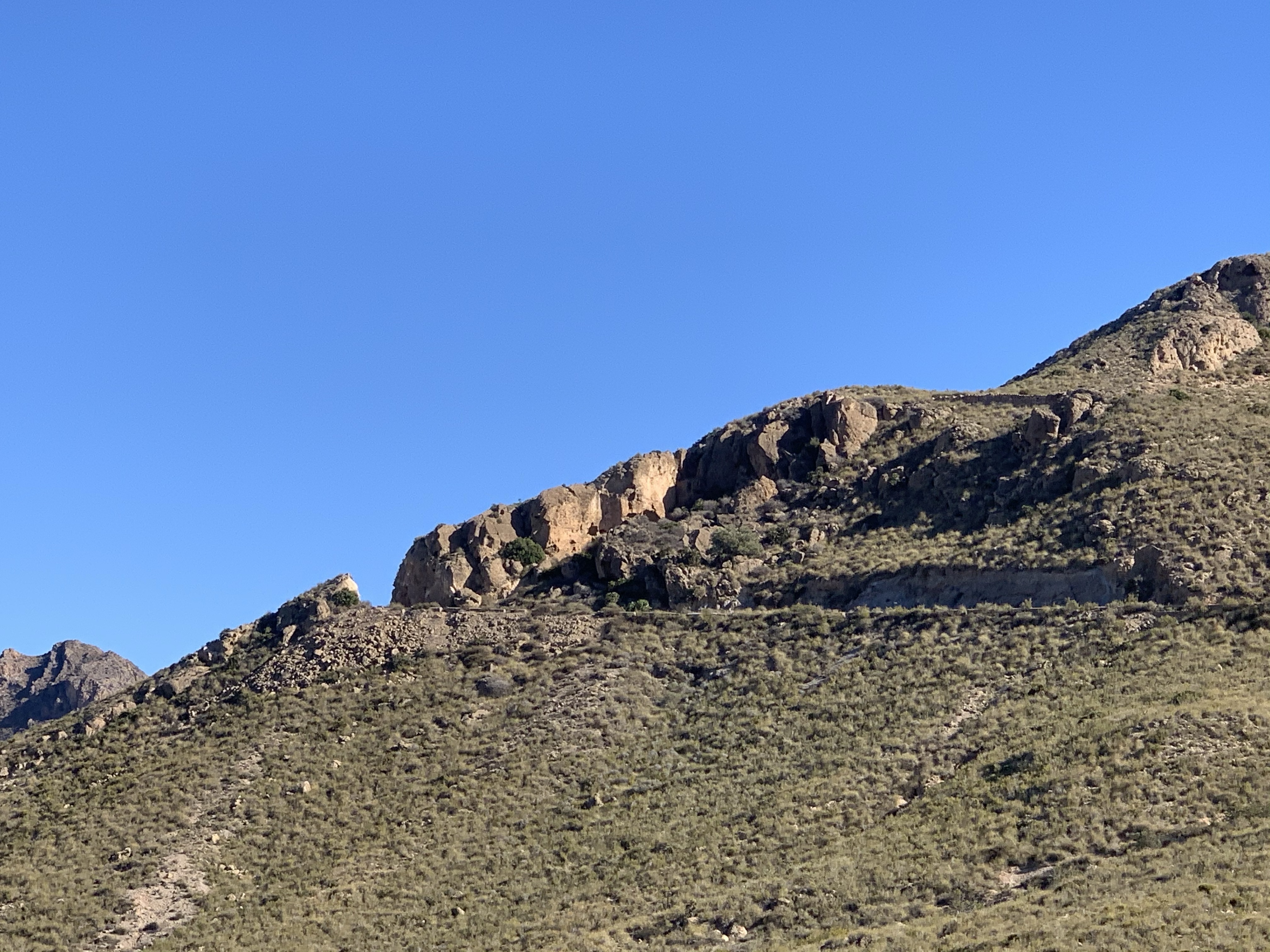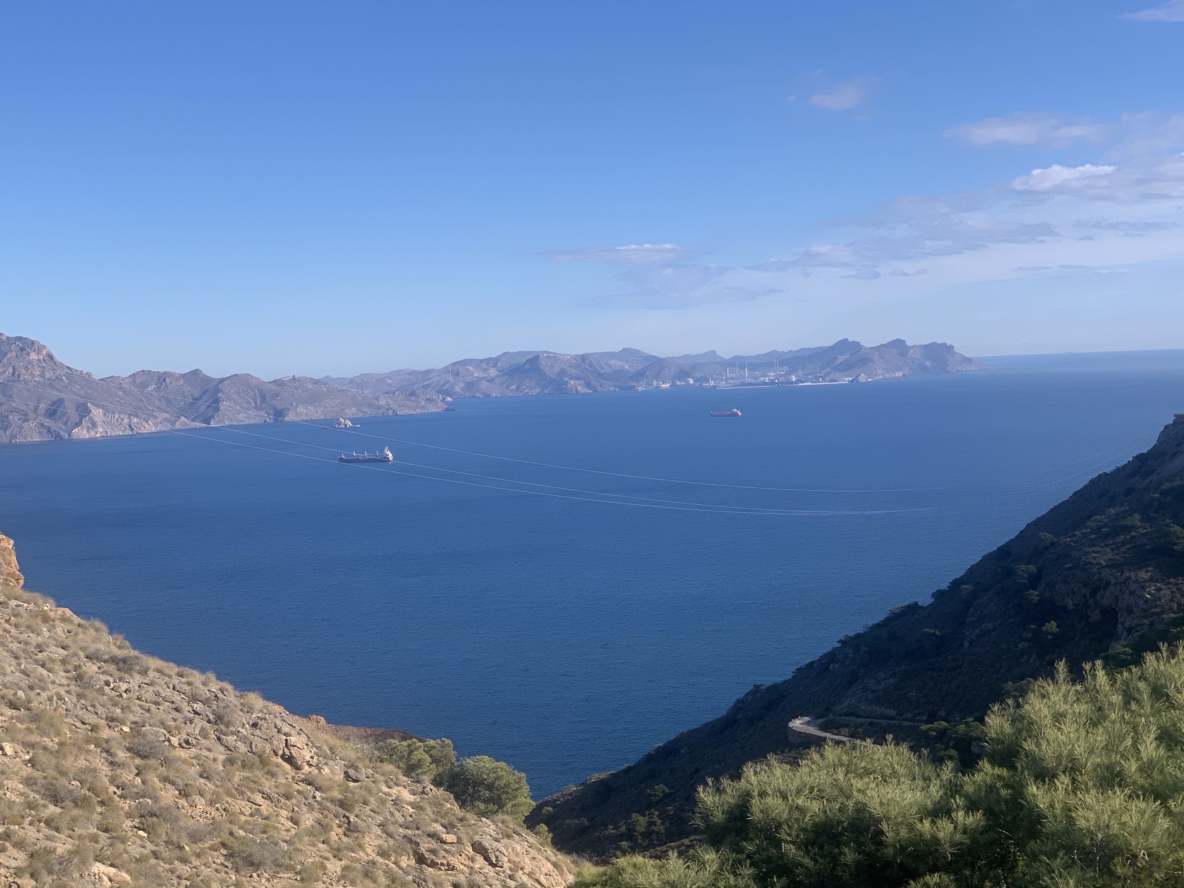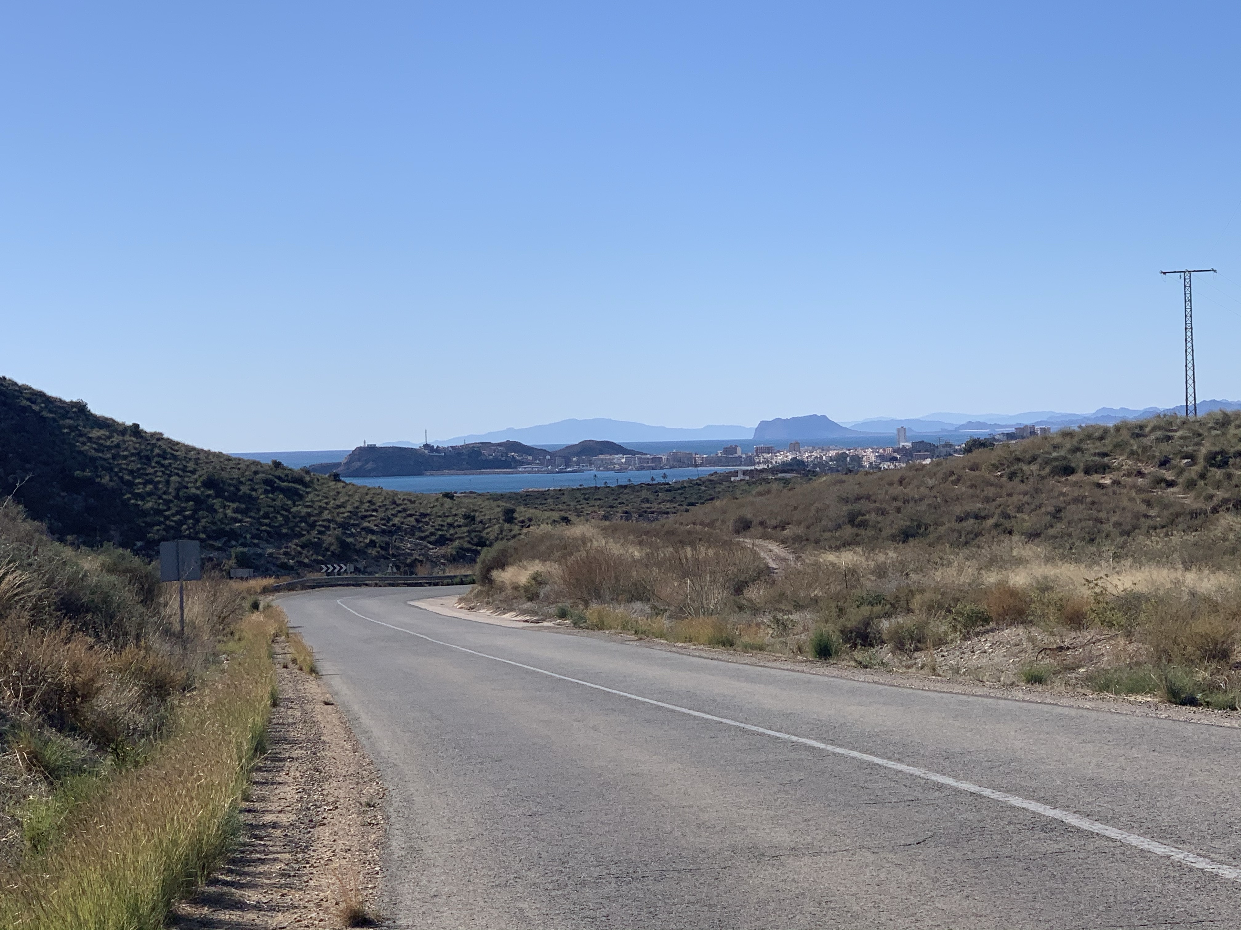 Den nächsten Tag machen wir eine Küstenfahrt. Von Bolnuevo geht’s nach Mazzaroń. Da verlassen wir die Hauptstraße und folgen der Küstenlinie. Die Sonne scheint und bei den Anstiegen wird uns schön warm. Manchmal finden wir bei Komoot schöne Strecken, die die einheimischen Rennradfahrer da hinterlegen. Das erspart uns viel Suchen. Und die Jungs und Mädels kennen oft schöne Aussichten, die wir selber eher nicht finden würden. Die schmalen Straßen führen uns an der Küstenlinie entlang bis zu „las Antennas“. Das ist zwar militärisches Gebiet, aber nicht gesperrt.
